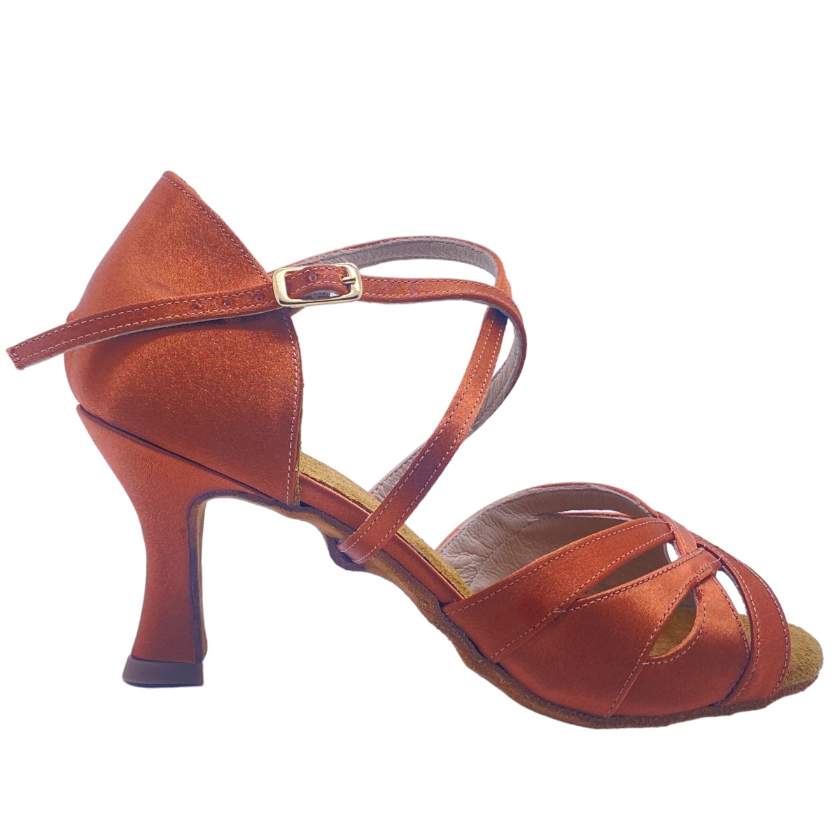 Flexible Latin sandal with a good fit in dark satin (copper) and 70 mm heel, well padded with... more