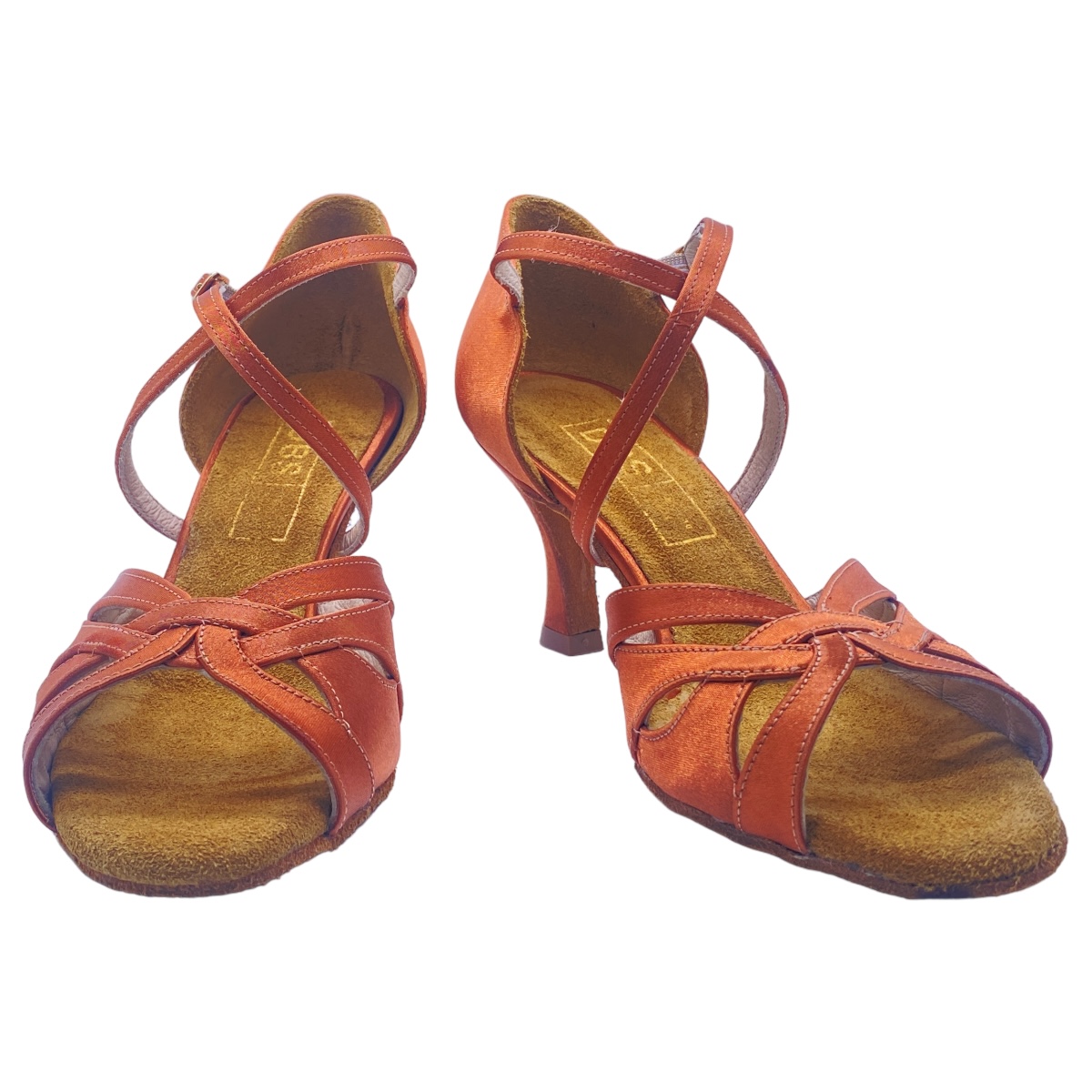 Flexible Latin sandal with a good fit in dark satin (copper) and 70 mm heel, well padded with stable, long-lasting foam for max comfort. The sweetheart neckline at the front leaves room from flat to high instep, this dance shoe follows all of your movements. Non-slip suede soles and flexible sole technology with a shorter insole make these Italian-handmade dance shoes also competitive. A perfect choice for competition as well as in your dance school. The w version has a more normal up to wider cut, if you have slimmer feet or a very low instep, you can also try the N version, which is a little tighter..