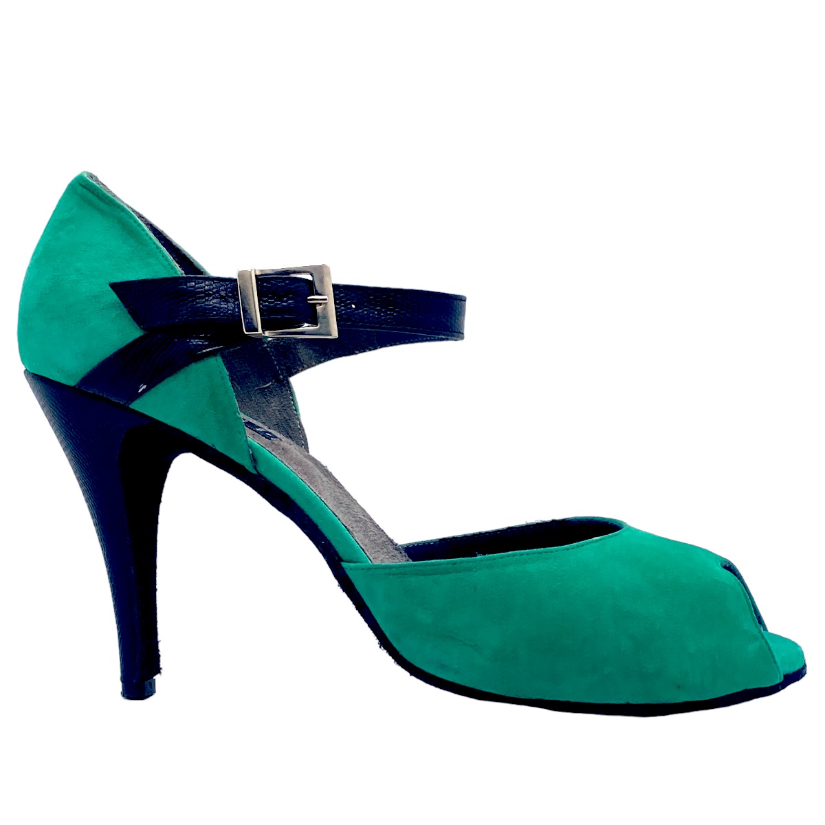 The tango shoe model 680 from Porteno & Bailarina in red suede with light gold print leather... more