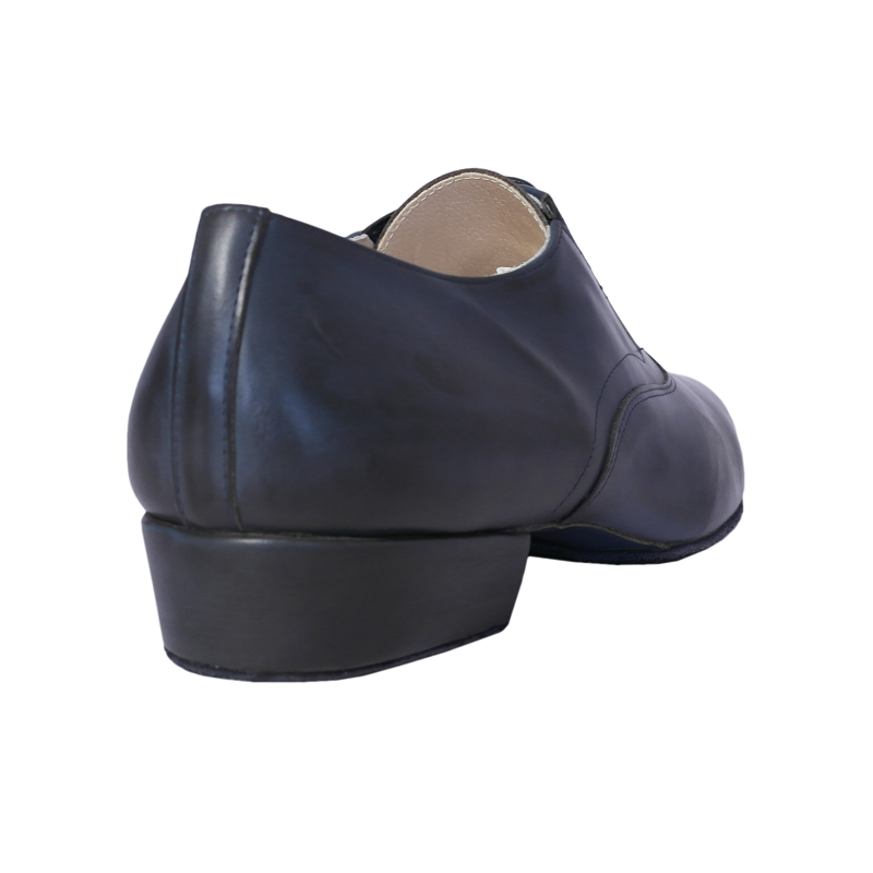 A refined men's style by Porteño & Bailarina - Diego with elastic inserts over the instep, because the feet can get thicker - also great if you have a high instep, 20 or 35 mm Microsoft heel - shock absorbing and protecting the foot and knee joints, here a fancy version in AVION - a type of steelblu that gets a brush effect after finishing producion - mostly bought for tango and salsa - but also for the normal dance school if the gentleman loves it fancier ...