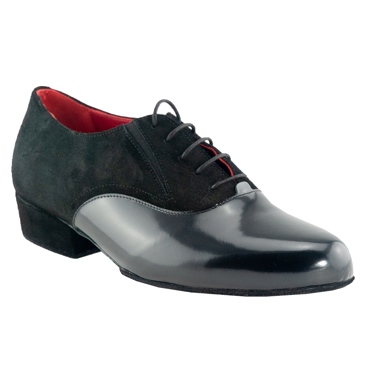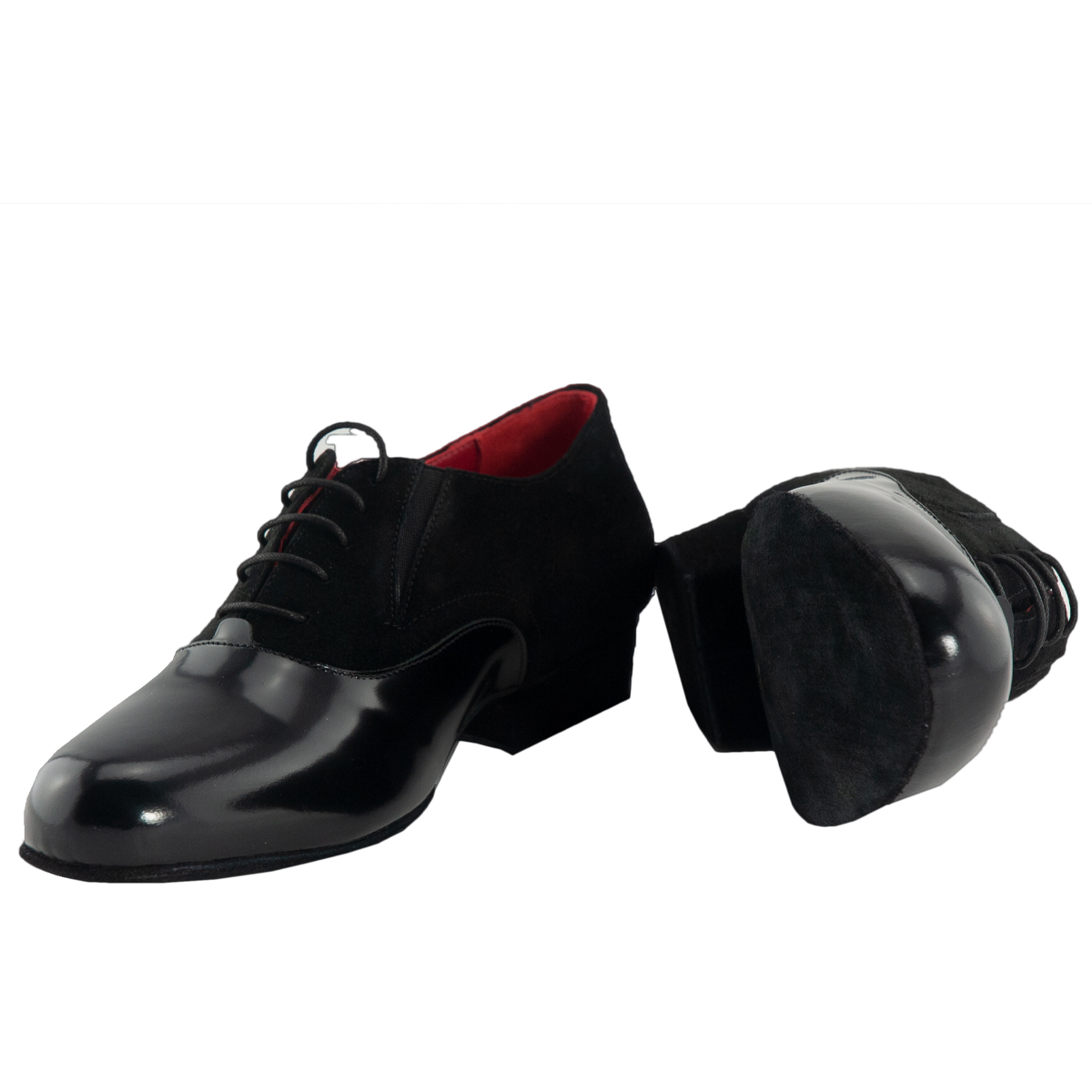 Elegant variant of the refined men's style by Porteño & Bailarina - DIEGO with elastic inserts over the instep, because the feet can get thicker - also great at high instep, 35 mm Microsoft heel - shock absorbing and protecting the foot and knee joints, here a elegant variant of black shiny Abrasivato Leather, mixed with soft Suede Leather - perfect for dinner-dance-night or even your wedding day - but also bought for tango and salsa (show) - but also for the normal dance school if the gentleman loves it fancier ...