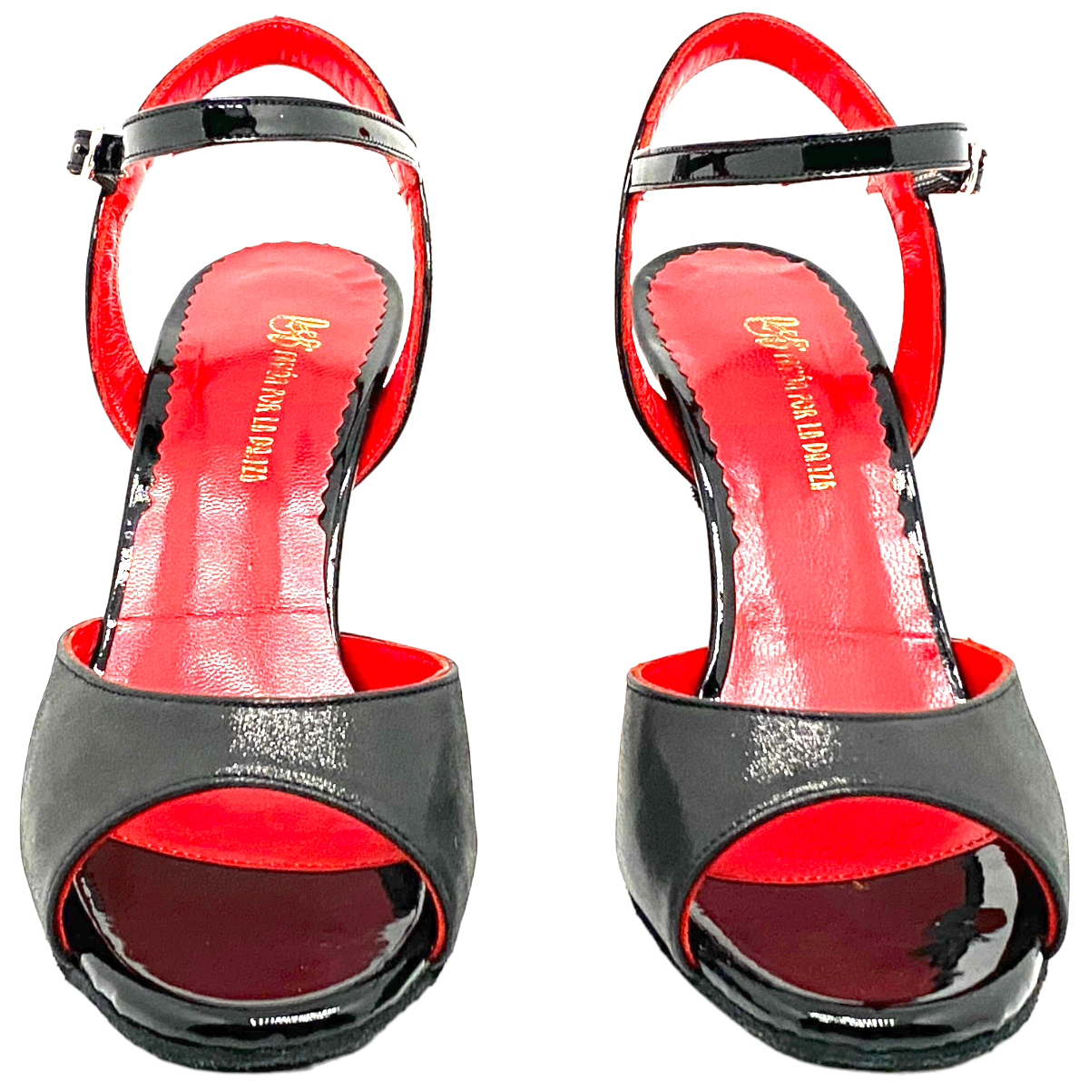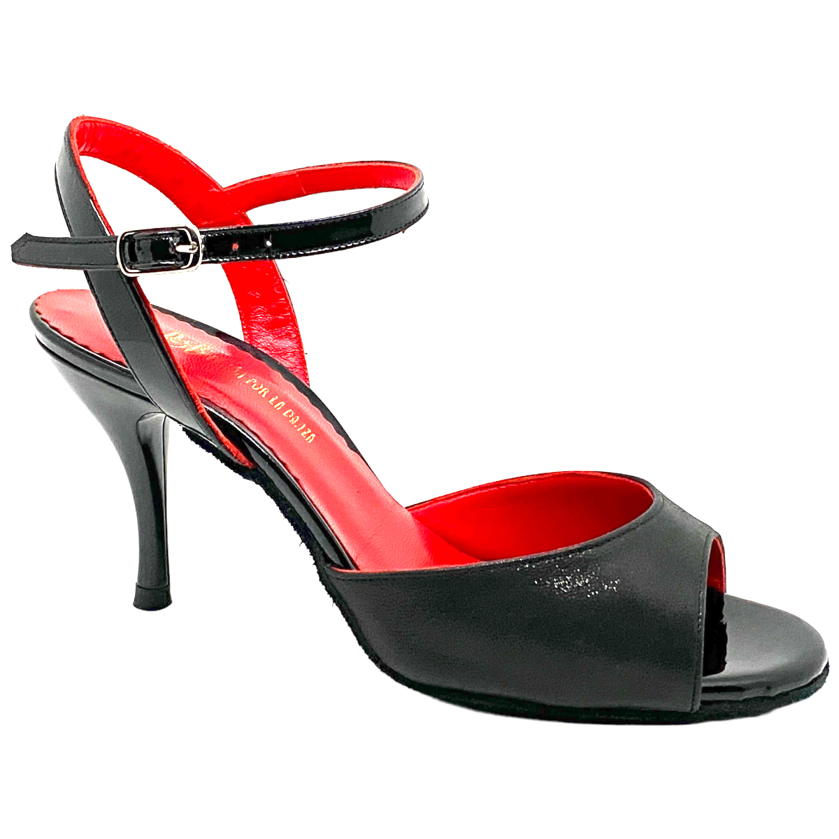 Here a slimmer fit of P&B's dance shor ELBA by Porteno & Bailarina in black suede with a strap made of patent leather, 80 mm heel height - the acrylic heel is painted resistant to impact, soft non-slip suede sole