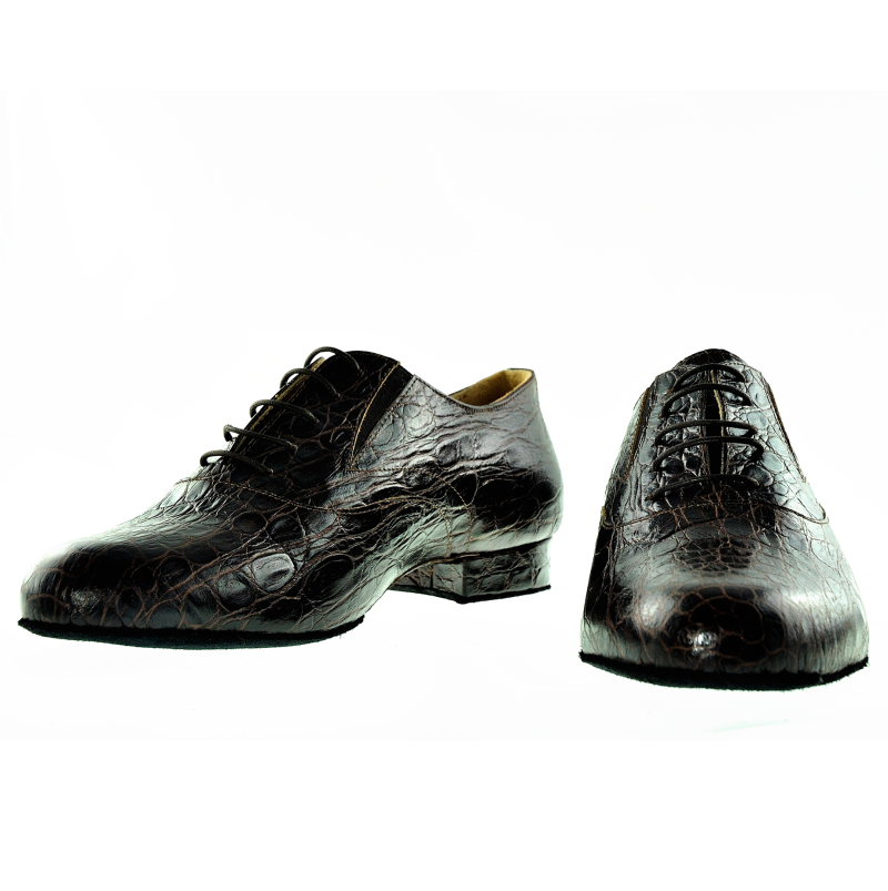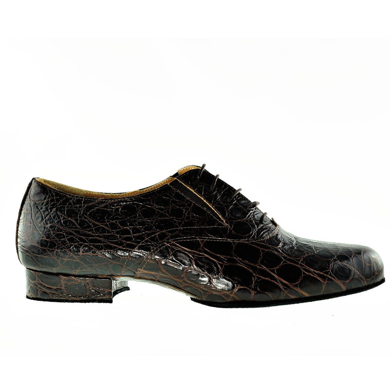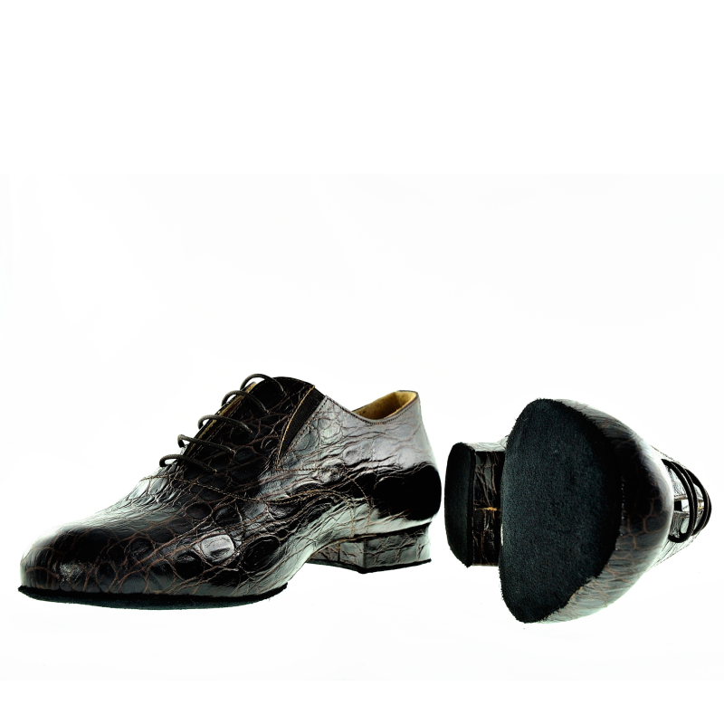 A refined men's model by Porteño & Bailarina - Diego with elastic inserts over the instep, because the feet can get thicker - also great at high instep, 20 Microsoft heel - shock absorbing and protecting the foot and knee joints, here a fancy version in brown crocodile print - mostly bought for tango and salsa - but also for the normal dance school if the gentleman loves it fancier ...