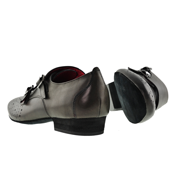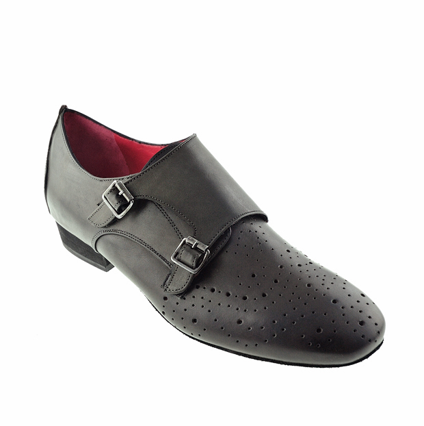 RK11 - Newcast Pepper - Fancy men's dance shoe by Porteño & Bailarina, handmade in Italy - with decorative buckles in the color Pepper (warm anthracite) with 35 mm MCR heel, shock-absorbing and gentle on the joints - a soft, non-slip suede sole -leather-lined in red
