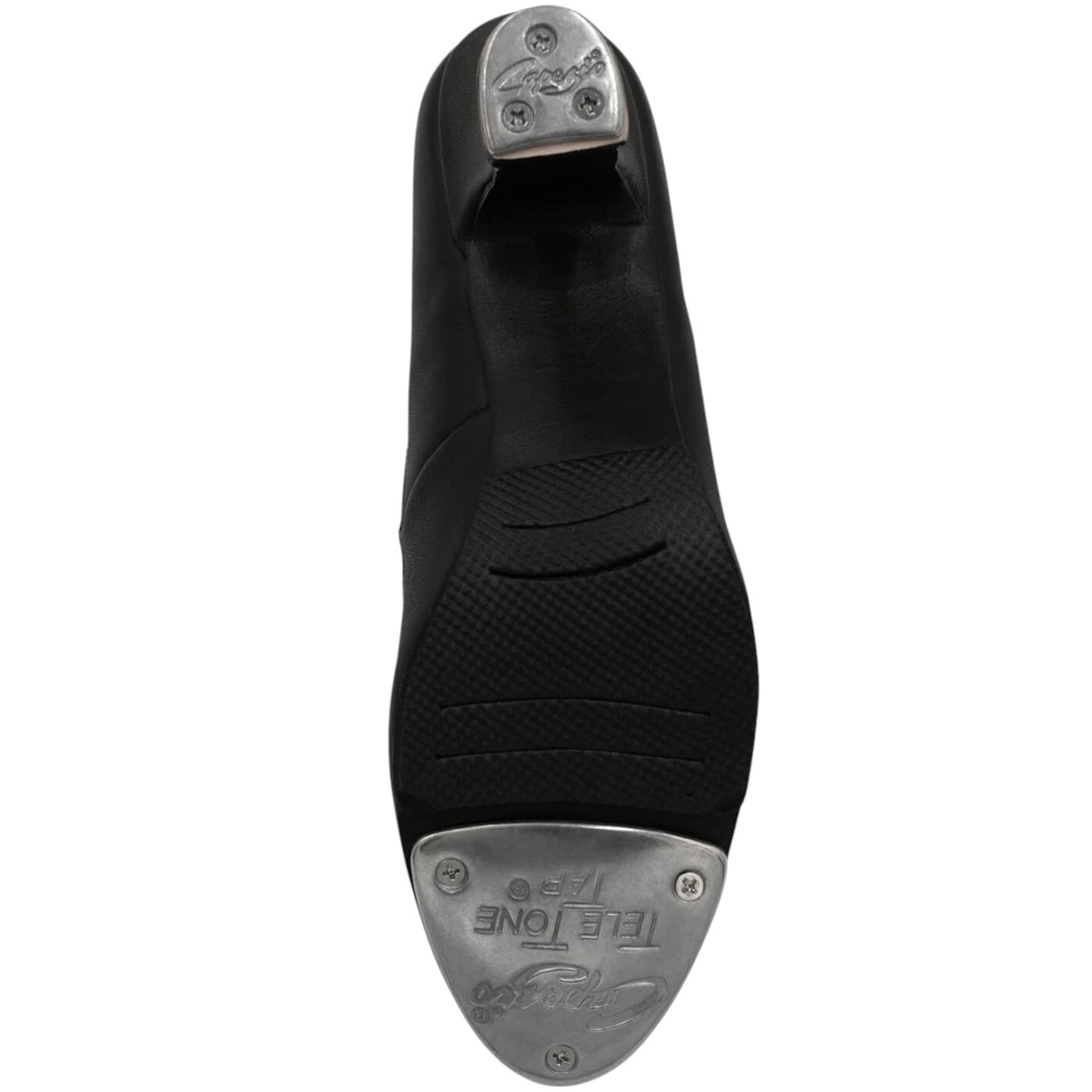 The women's tap shoe Manhatten Xtreme from Capezio made of black leather. With leather lining, 6,35cm (2,5") leathercovered plastic heel and preattached TeleTone toe taps and DuoTone heel taps.