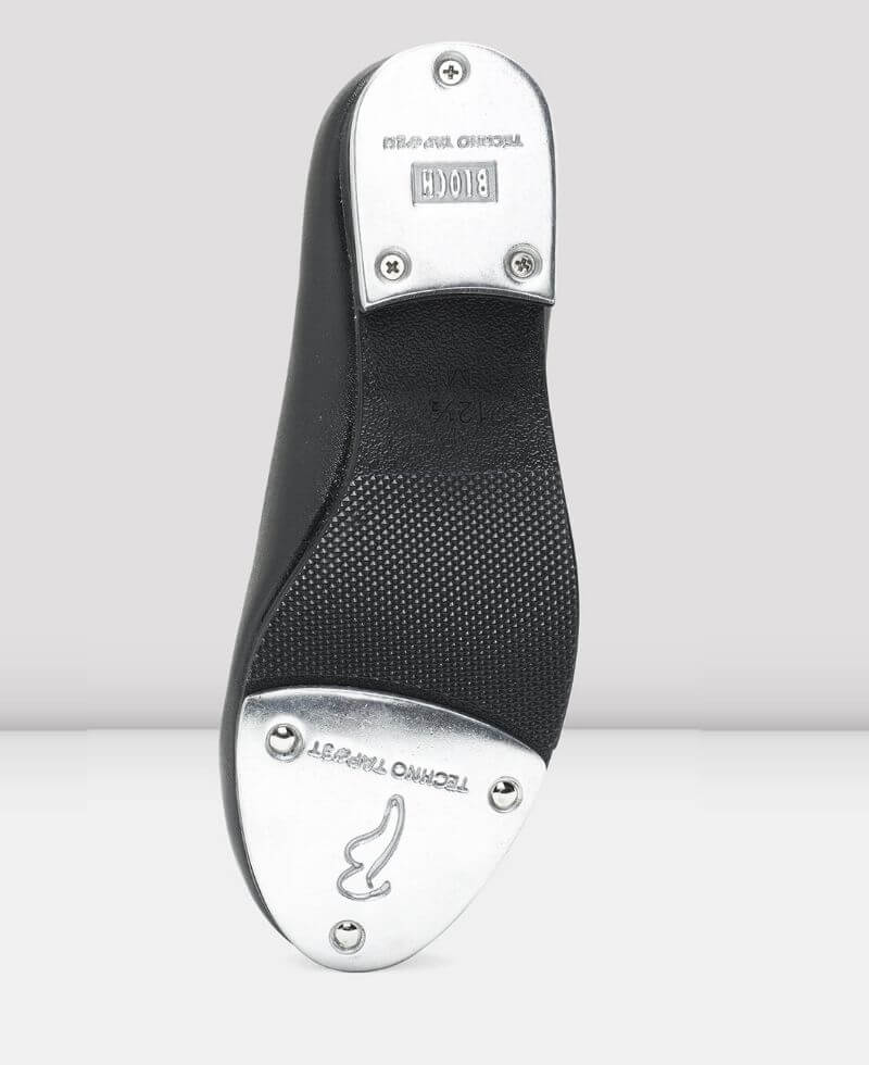 The jazz shoe Economy Jazz SF3710G by Bloch for children made of black synthetic leather with 2cm heel, padded insole and preattached Bloch Techno Taps.