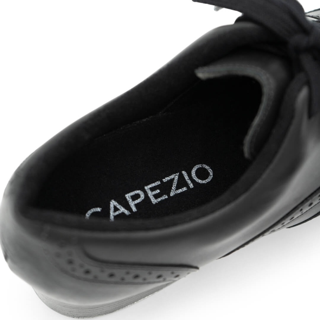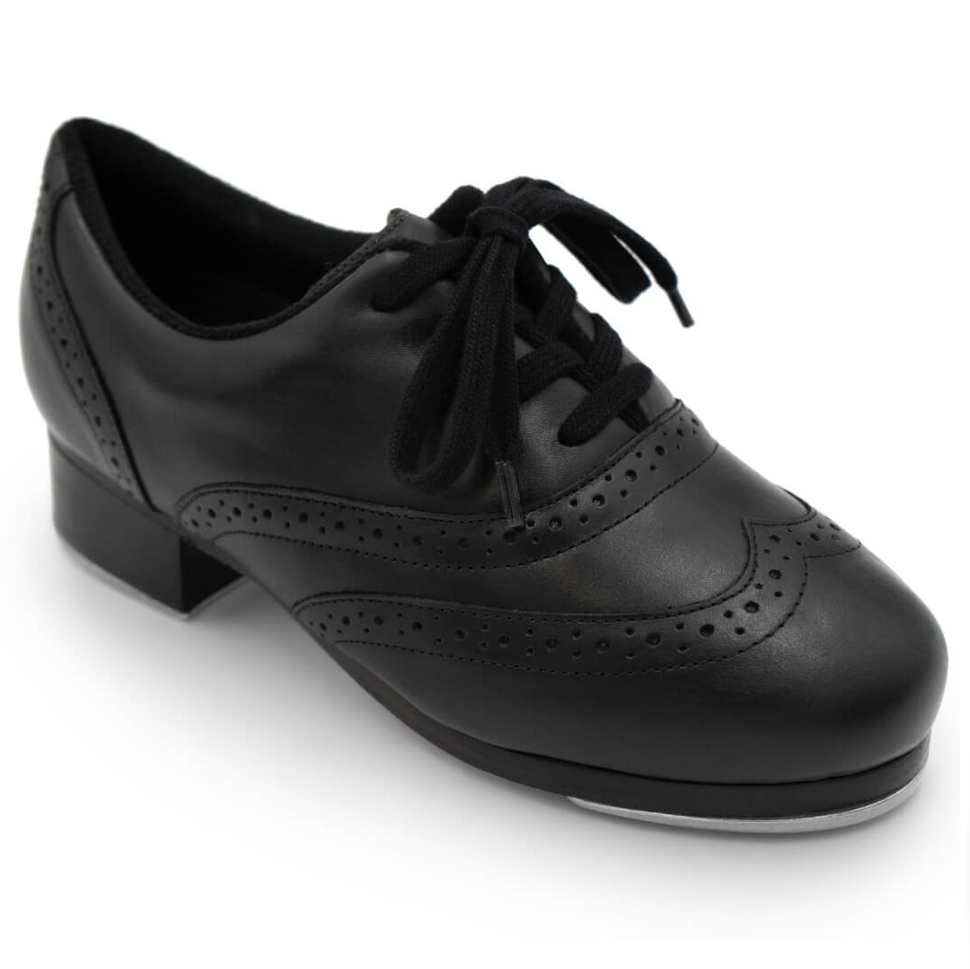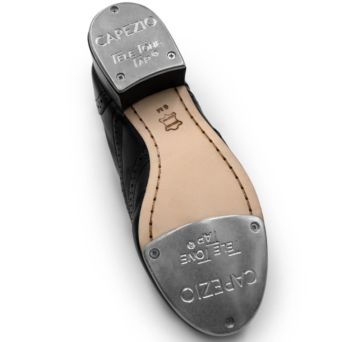 Revamp your look in the Roxy Tap Shoe. Made on a new, sculpted last for a contoured fit to the foot and features a feminine, “almond” toe shape. The upper is made from a soft, mold to the foot, Brazilian leather and designed with a traditional wing tip for style. Inside, a molded EVA insole mimics the shape of the shoe for additional foot and arch support. Secure for toe stands, the toe box has a medium reinforcement and offers less restriction on the flex point. Double layer sole and stacked, solid heel straight out of the box. Made of genuine leather, the sole has been stitched for added security. Signature Tele Tone® toe and heel taps are flush mounted for a trademark Capezio sound that begs to be heard.