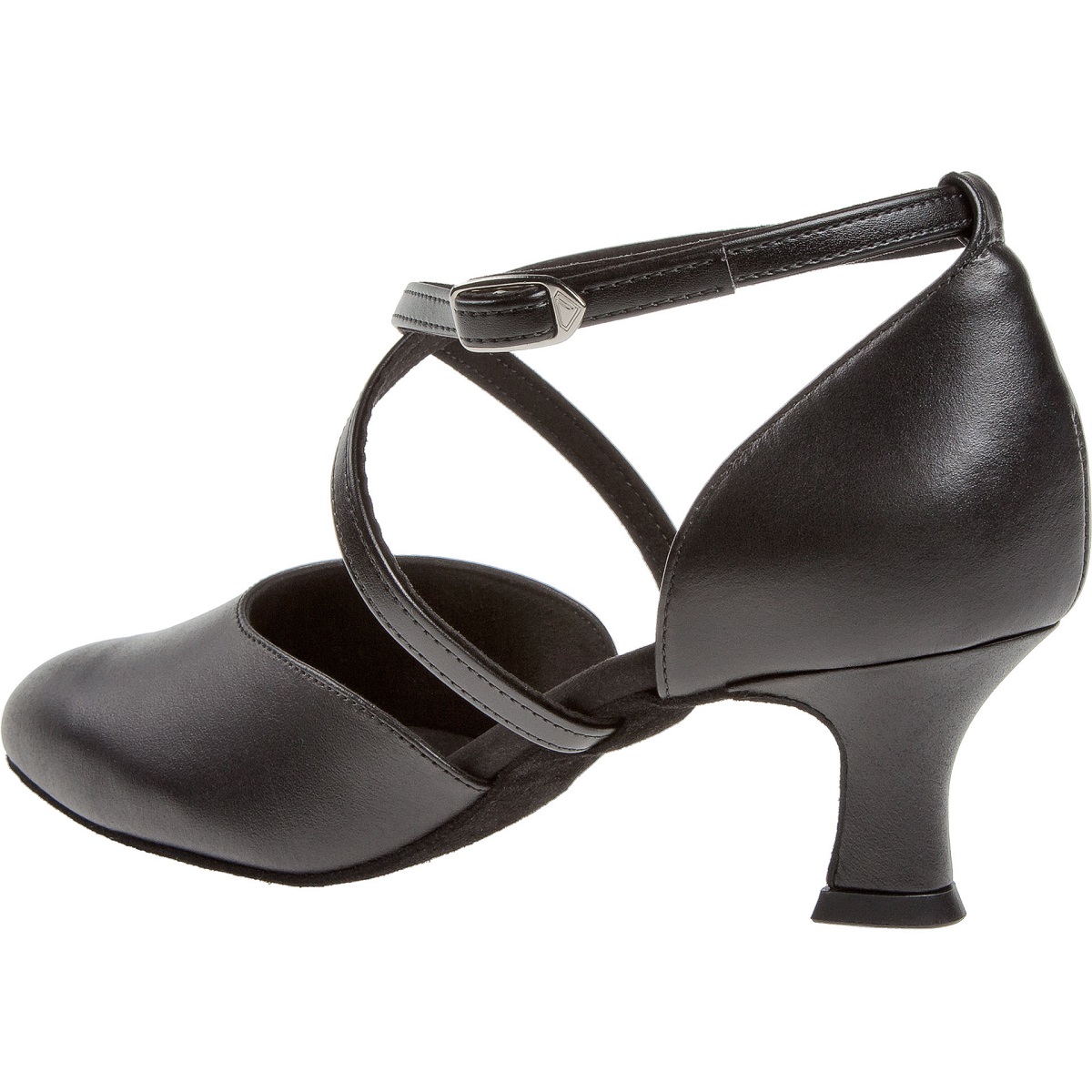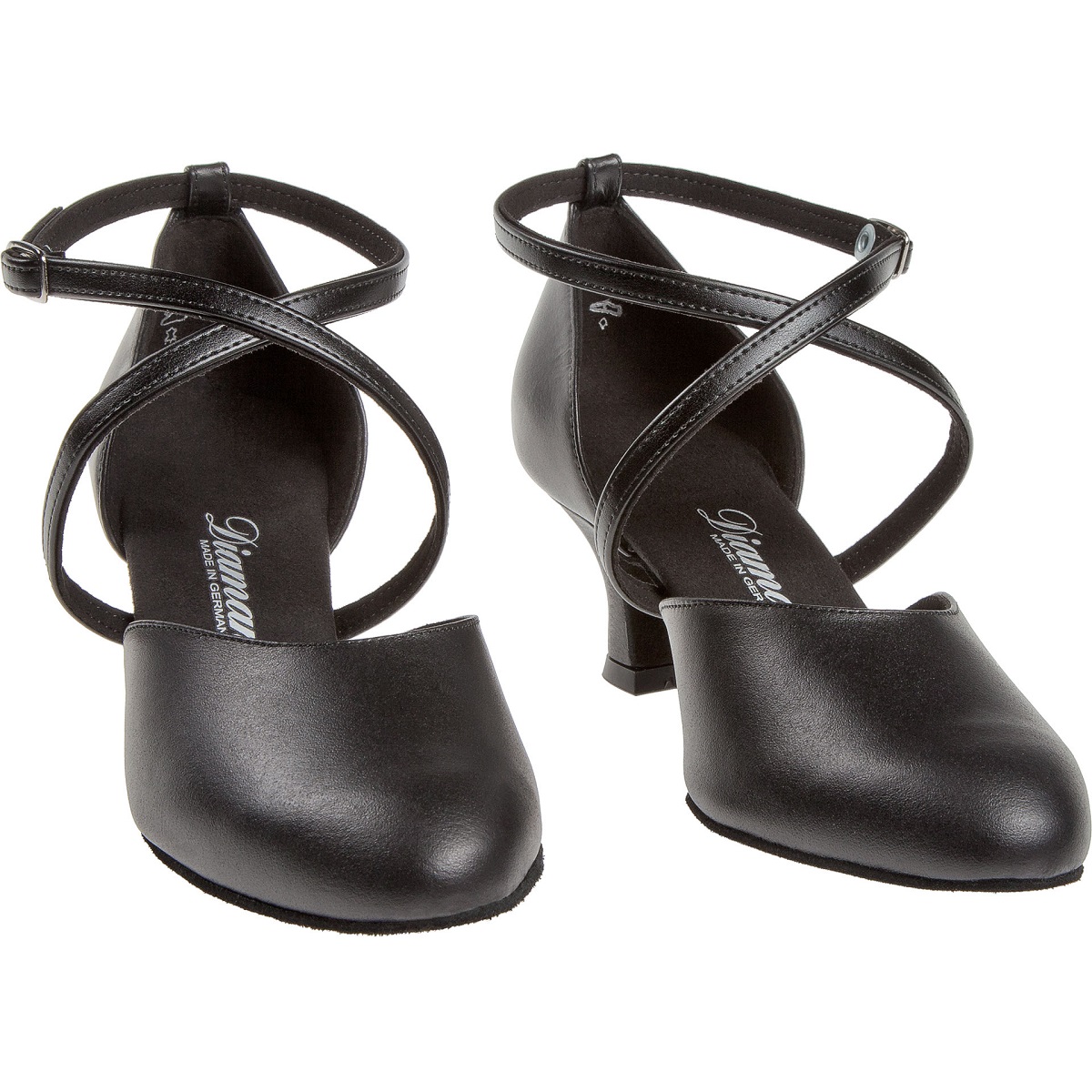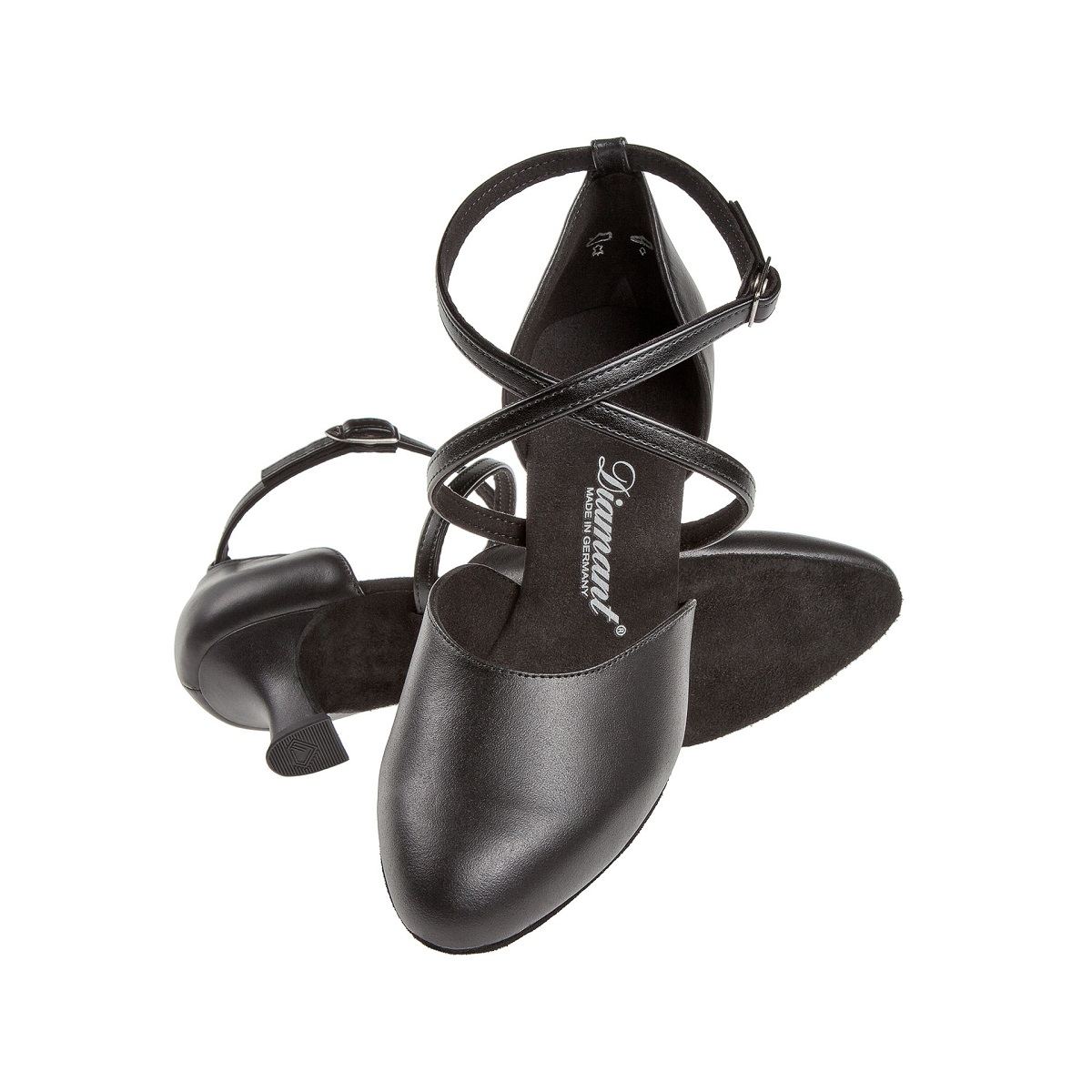 The handmade modell 048-068-034 from Diamant made of black cow leather. The closed Pumps with round cut can be closed stepless with a clip. The lining is made from a breathable, antibacterial and wetness absorbing microfiber from italy.