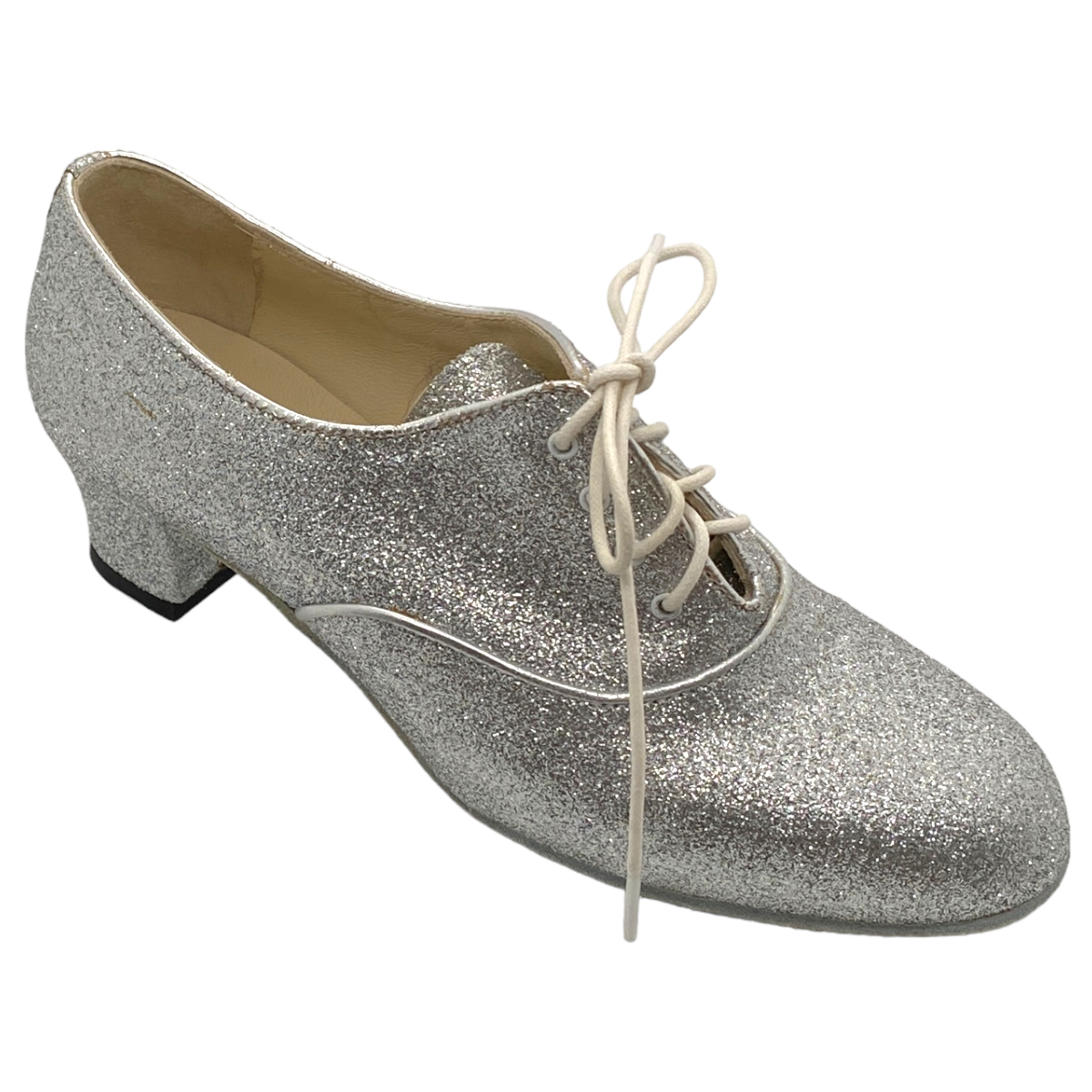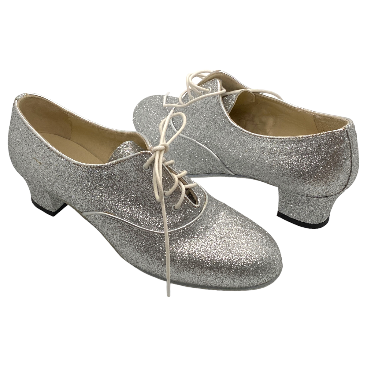 Elegant ladies trainer shoe in sliver glitter upper, leather lined - heel 40mm, non-slip suede... more