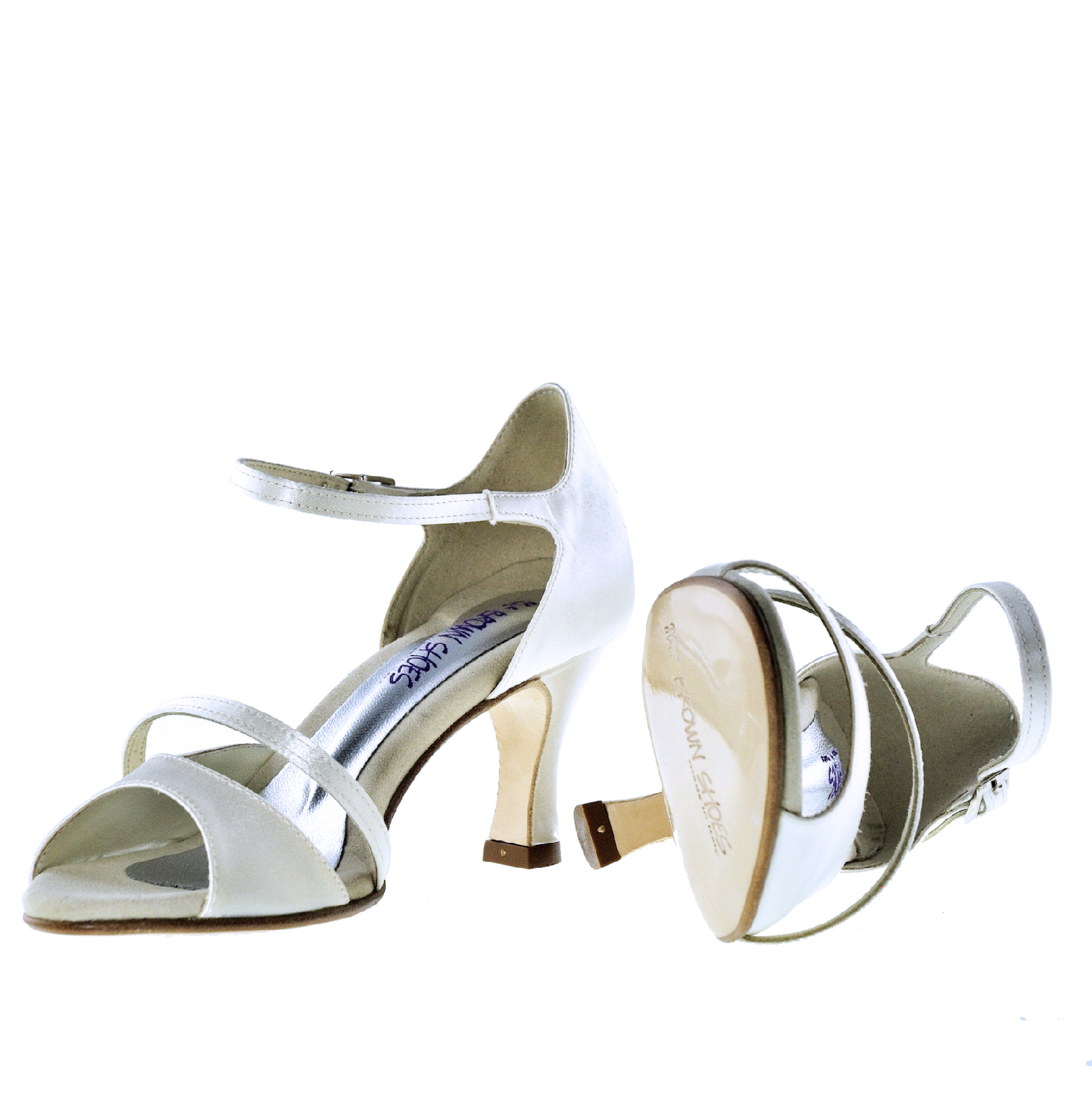 Sidestrap Sandal in ivory satin with leathersole, small strap over front for additionally... more