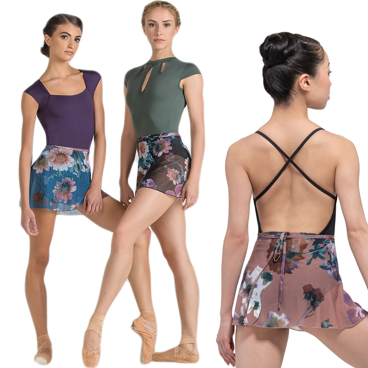 Wrap skirt CANDIDE by BALLET ROSA - the Etelan Collection is as bold as it is beautiful, showcasing a modern yet romantic print of uniquely textured garden flowers. This bright and colorful floral design pops vivaciously against a backdrop of microfibre and four-way stretch mesh, available in different colour combinations. Café au Lait and Encre Bleu we do stock in Hamburg.
