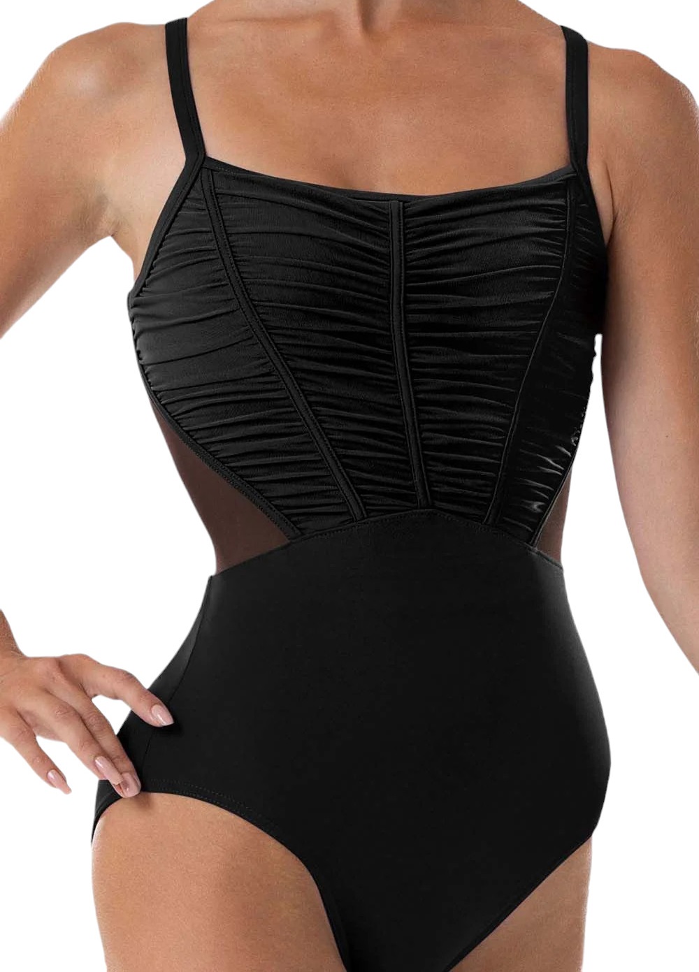 The Ladies Mesh Back Leotard VIVICA features camisole straps with ruched bodice detail and a... more
