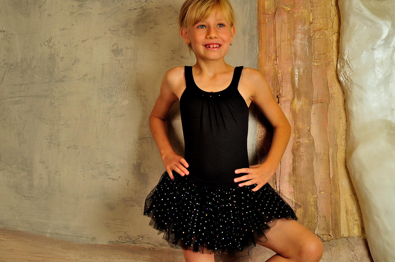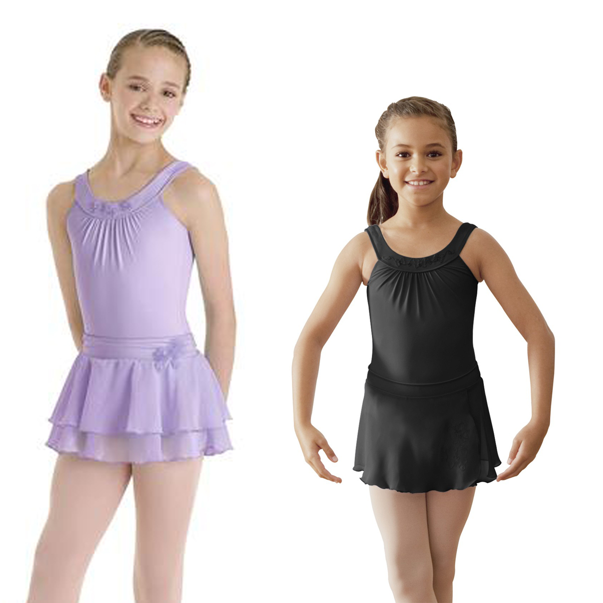 Girls Ballet Leotard by BLOCH in lilac or black, decorated with little tull-flower, each with a rhinstone inside, gathered at front, childishly elegant...