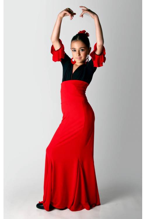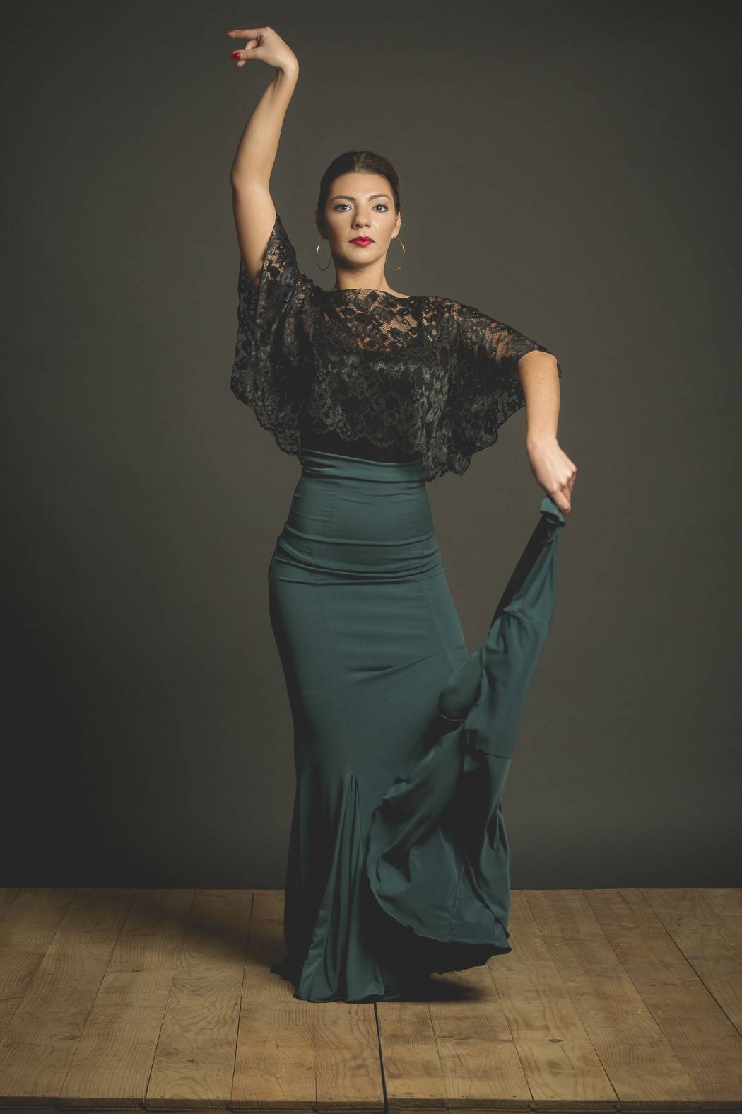 Fancy narrow-cut 6-ply skirt with wide waistband that can be placed over the hips, in the lower half are inserted 6 generous godets for wonderful movement. 91% polyester with 9% elastane - flamenco skirt Ogalla (100% polyamide ) has 2 functions. Turns out small !! Wearable as a hip skirt or a high waist skirt! width approx. 5 m width