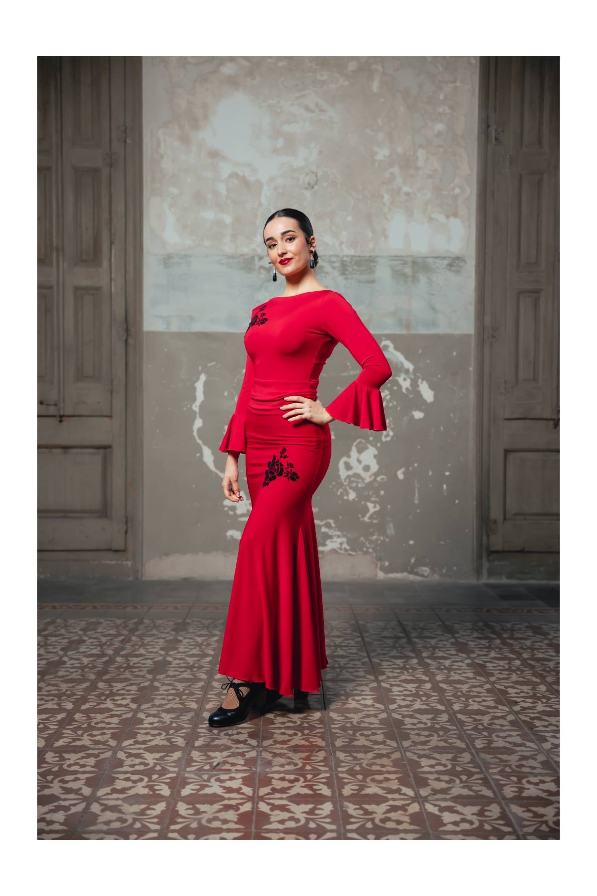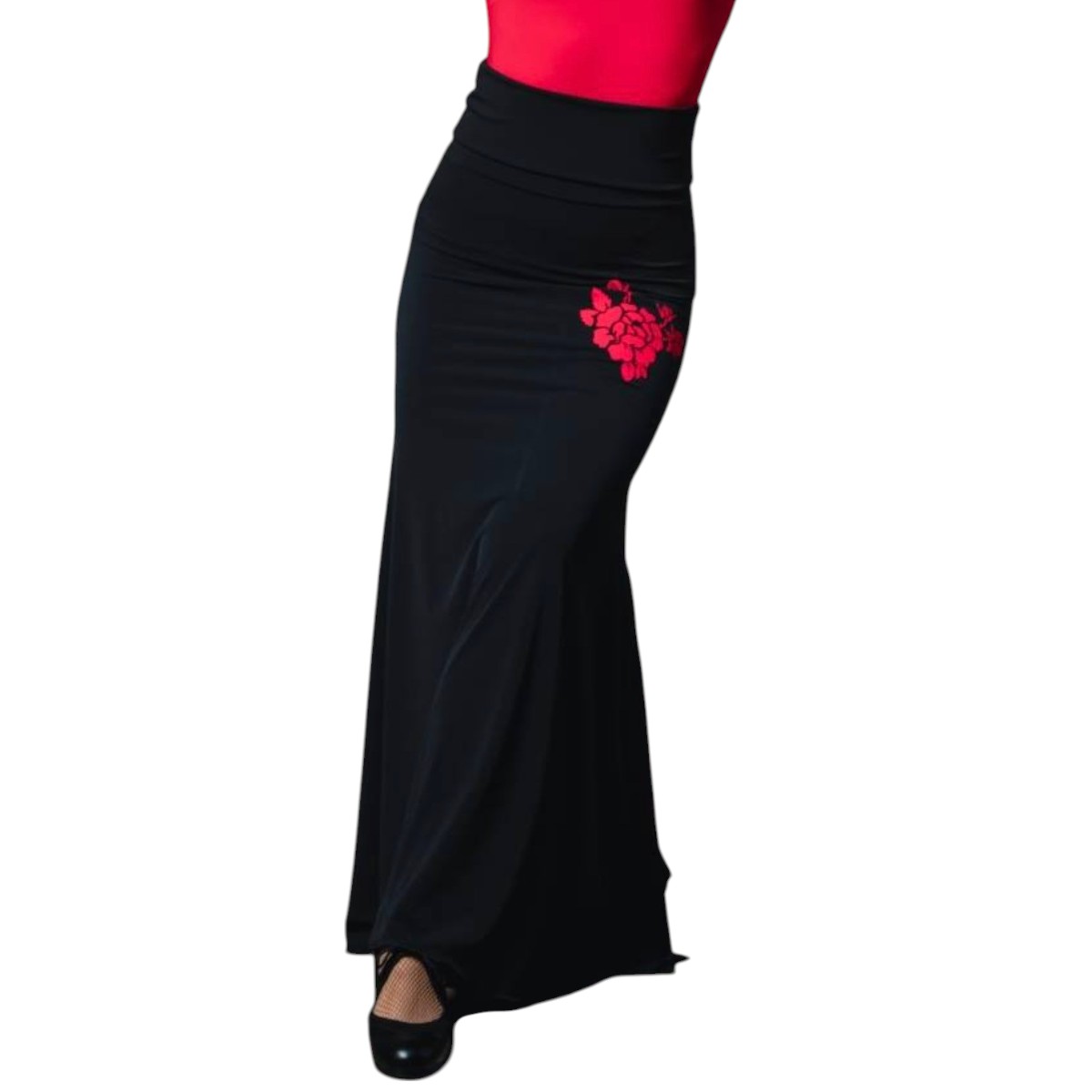 Long skirt with a high, fold-over waistband. Godets on the sides and center back. Rose-shaped... more