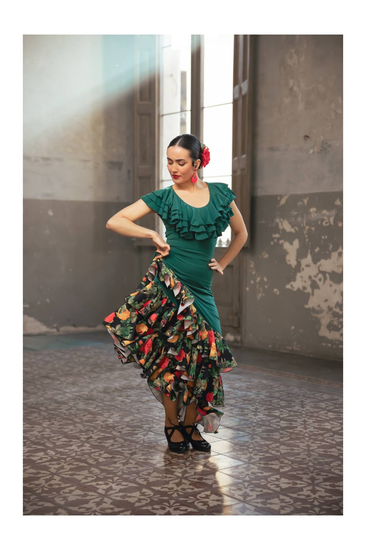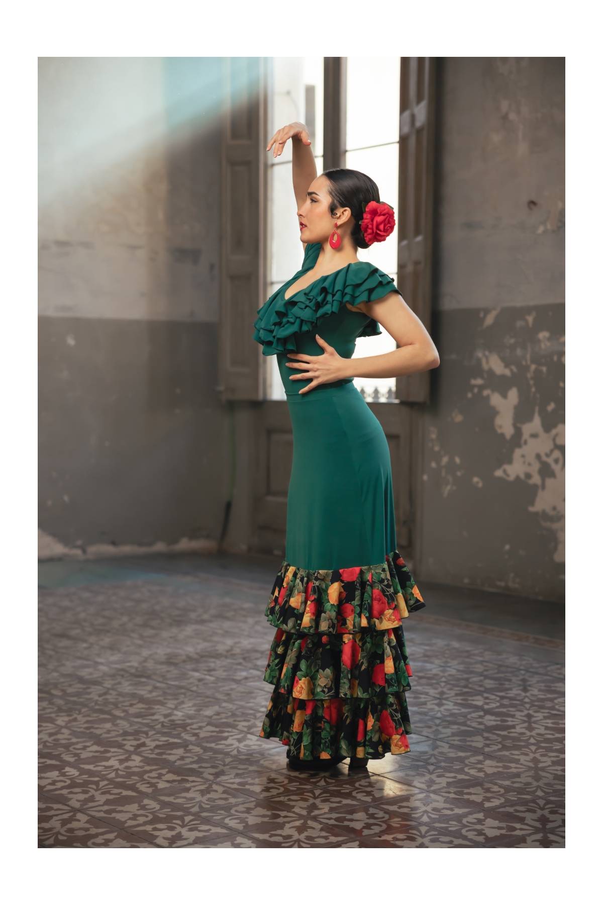 Long flamenco skirt with a waistband and three layers of ruffles from the knee down. A great... more