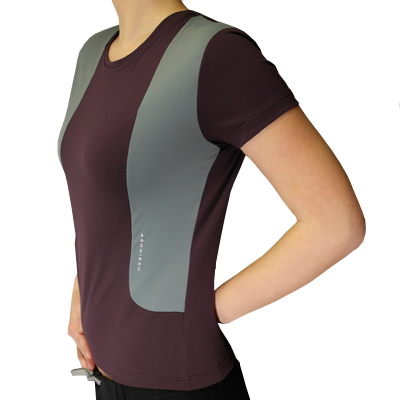 The ladies shirt from Röhnisch in eggplant, grey and light pink.