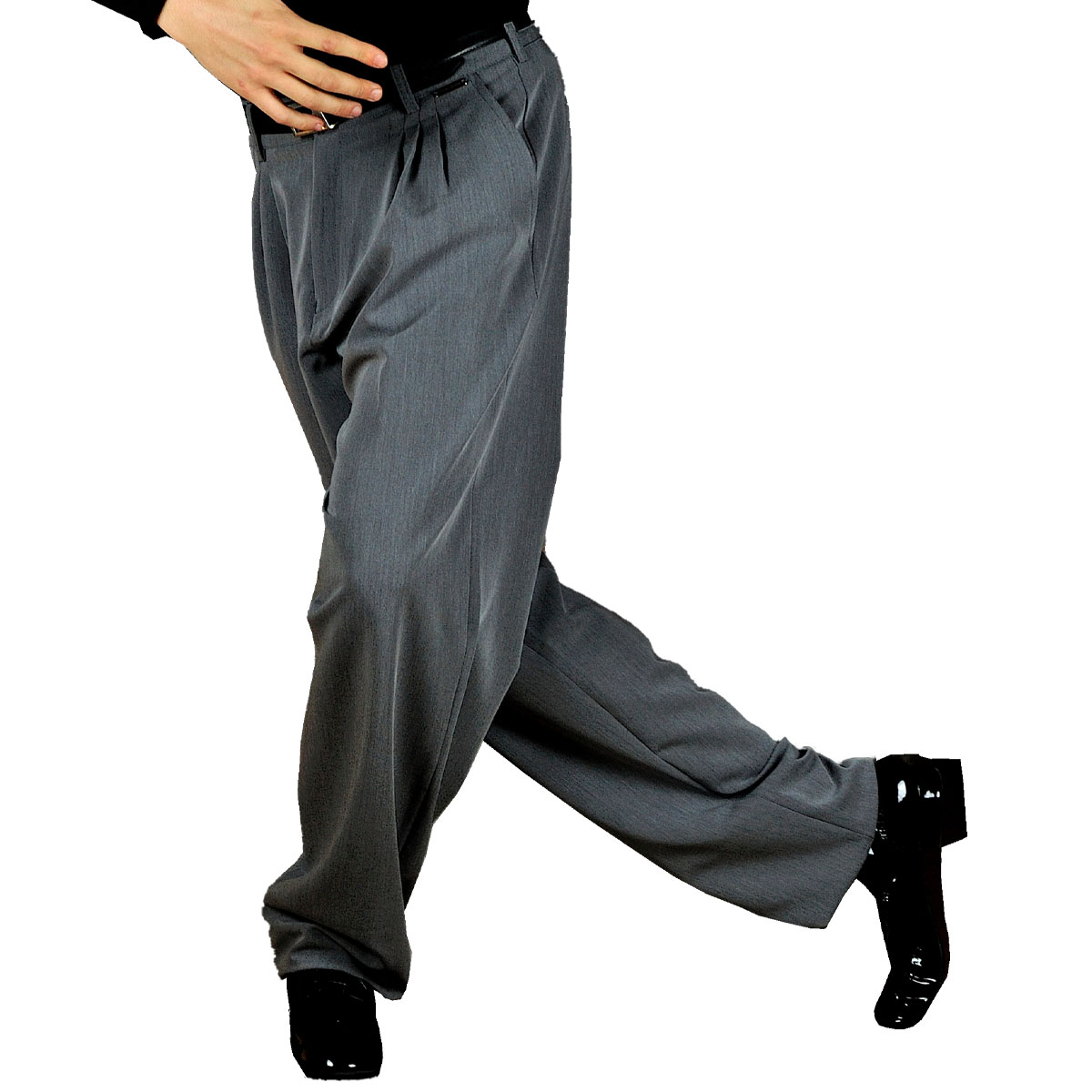 Men's trousers by Porteño & Bailarina for Tango Argentino, manufactured and fabric from Italy, 3 pleats, leg cut runs slightly together, so not so bullish on the calf - length open (hem not sewn) for easy individual shortening. Beautiful soft, not too solid material - perfect for Milonga / Show or Practica all year round. Fabric quality:  70% Polyester / 25% Viscose / 5% Spandex - here in a light clear gray (Ghiaccio = ice cubes)