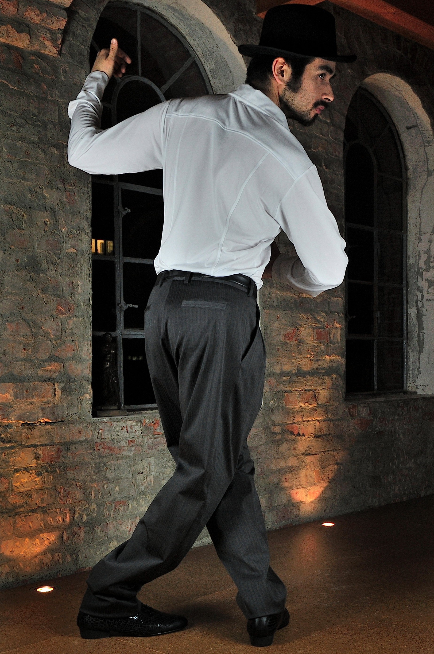Very noble men's Tango trousers by Porteno & Bailarina with wide stripes tone on tone with a very delicate pinstripe, thicker quality - very fine trousers with noble shine, made of 48% cotton / 49% polyester / 3% spandex, perfect also for show or tango festival as the pants reflect extremely well in the spotlight -
