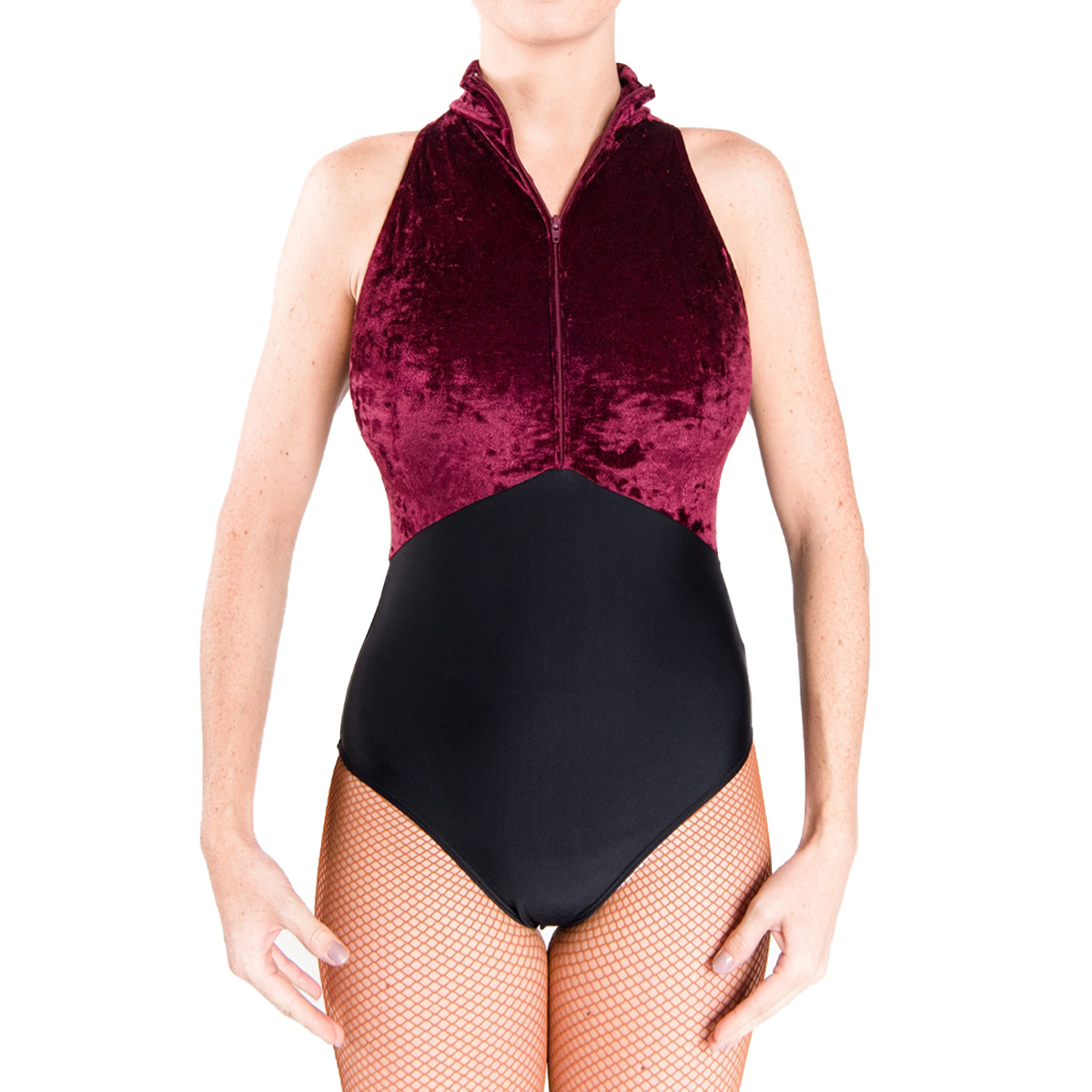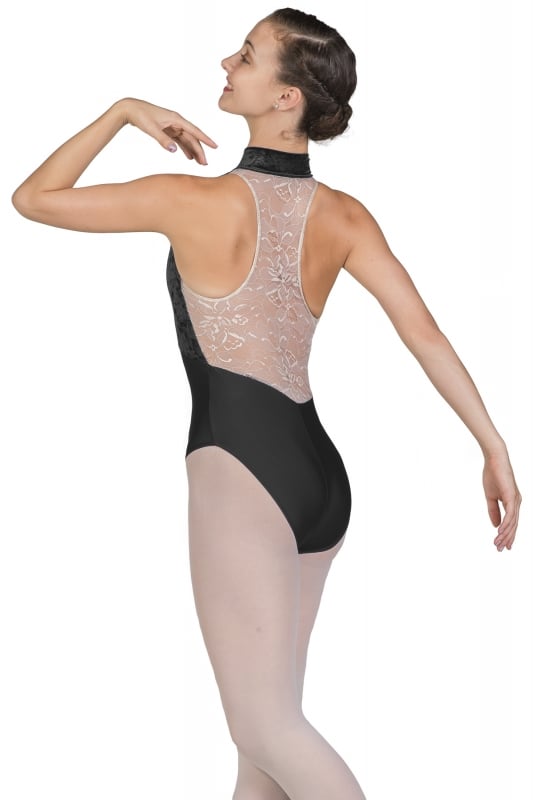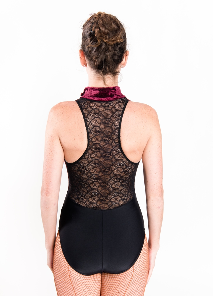 The stunning line of Ballet Rosa, designed by Isabelle Ciaravola - here a sophisticated leotard in delicate velvet with a small zipper, beautifully worked back in noble lace