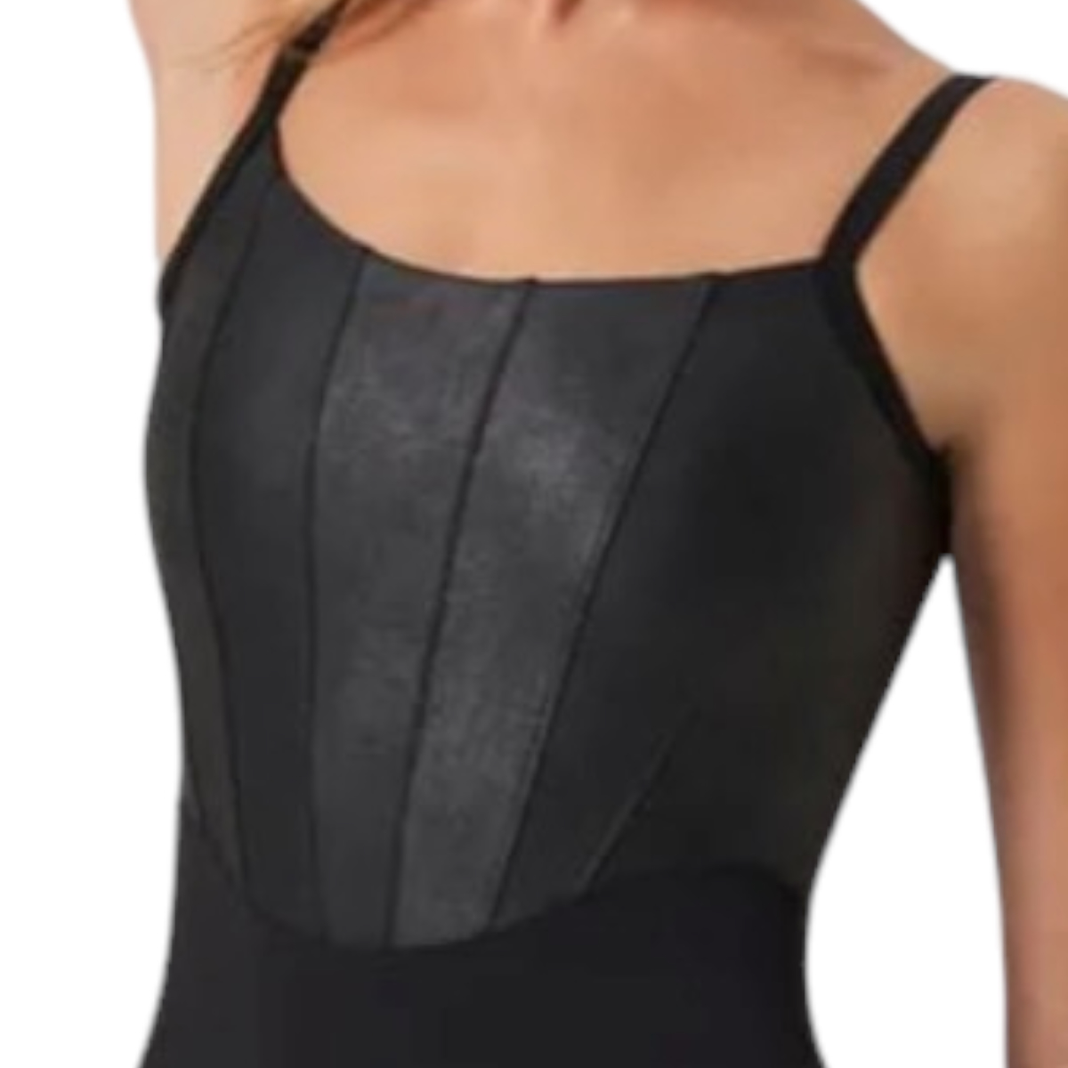 Ladies Nevaeh Mesh Back Leather Look Leotard by Bloch features a Leather Look panelled bodice with camisole straps and a scoop mesh back. Part of our Bloch Twilight Collection featuring modern silhouettes cut from our signature performance fabric. This bewitching collection is available in a black leather look for a contemporary feel and a trio of deep tones for a classic style.
