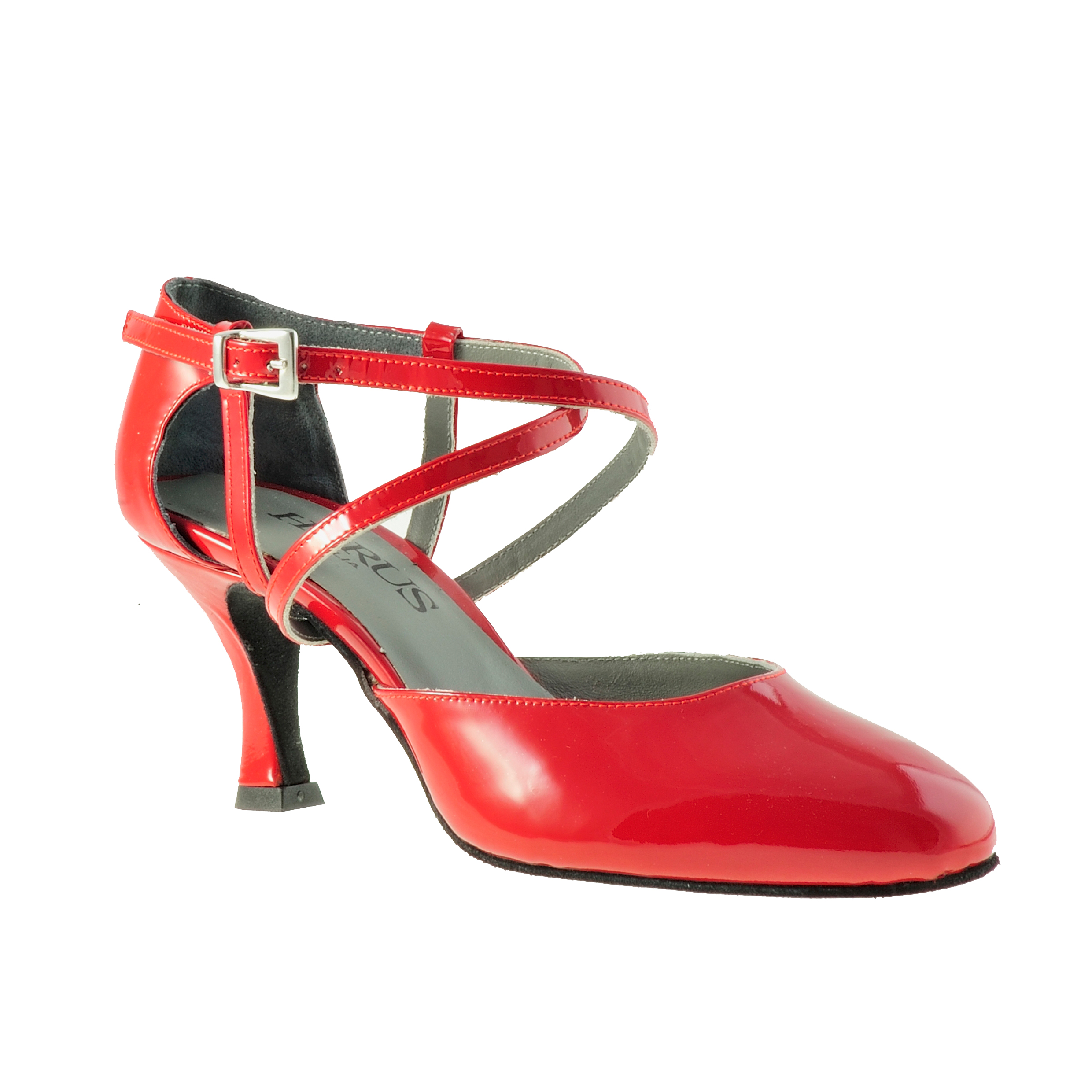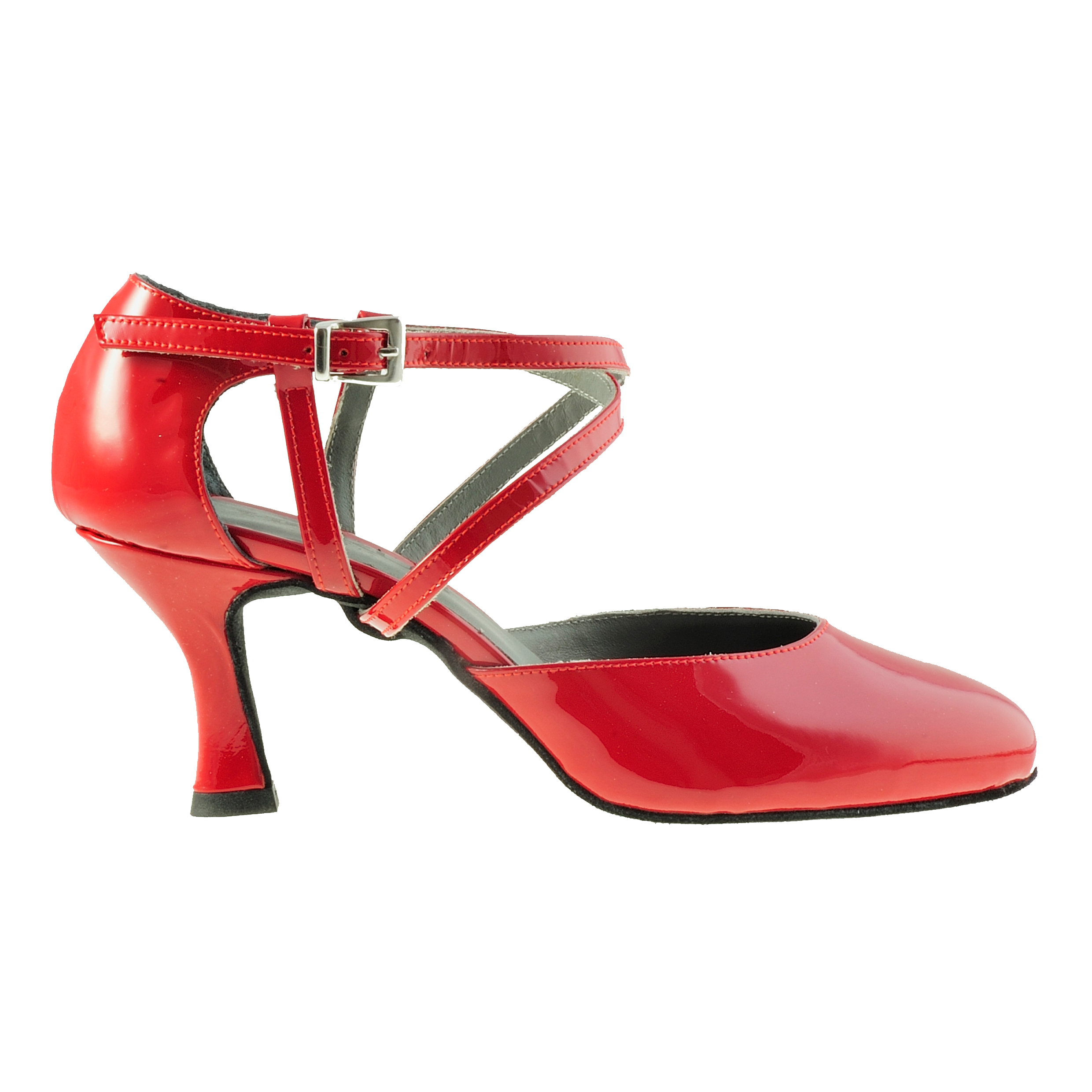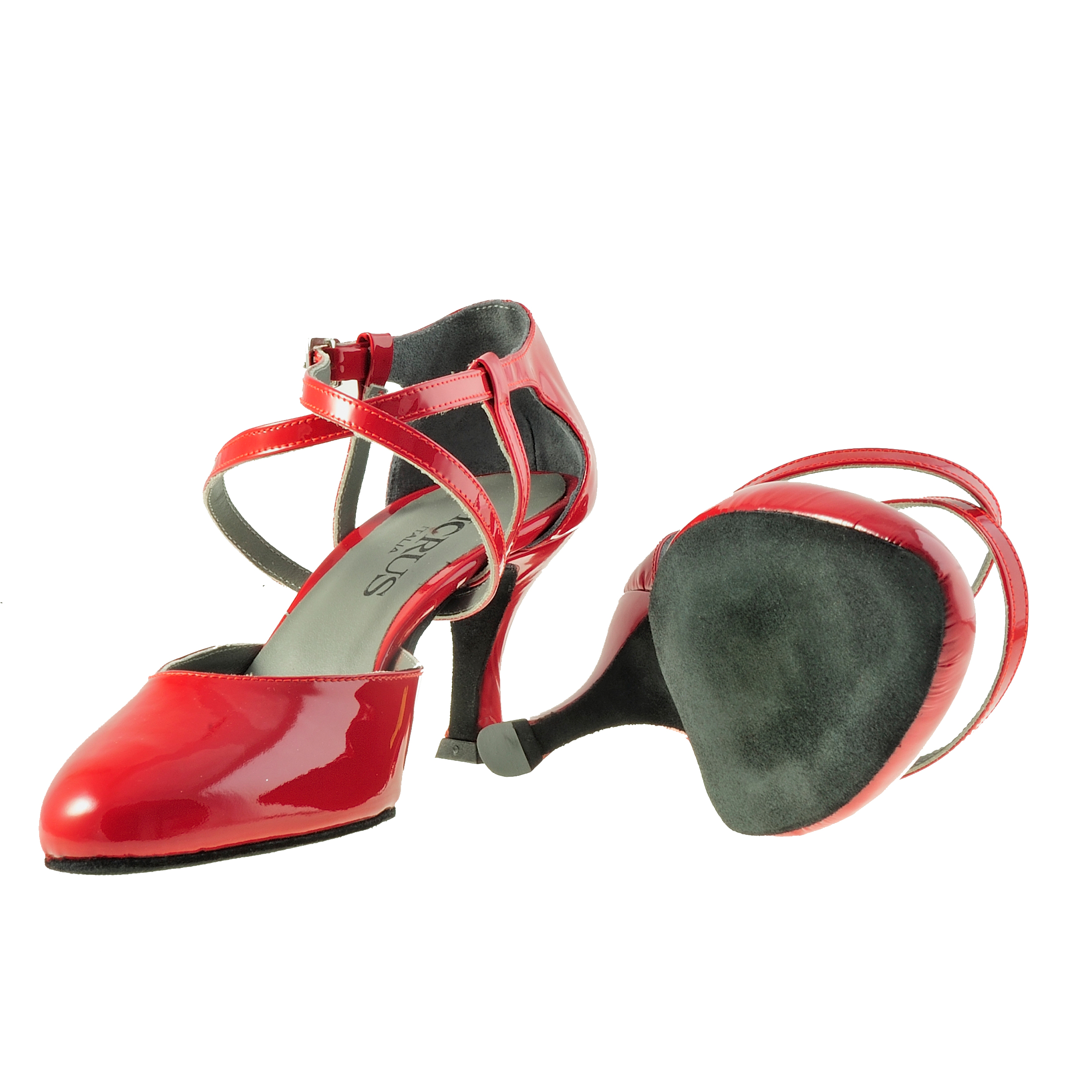 Schicker italienischer Damen-Tanzschuh in rotem oder schwarzem Lackleder mit 70 mm Absatz und griffiger Wildledersohle, weiche Innensohle, Futter und Obermaterial aus pflanzengefärbten Leder, italienische Handarbeit