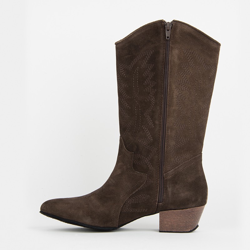 Der Line Dance Stiefel aus dem Hause Rumpf in schwarzem oder braunem Nubuk Leder mit Stickereien. Mit durchgehender Wildledersohle und einem hinten abgerundetem 4 cm Absatz.