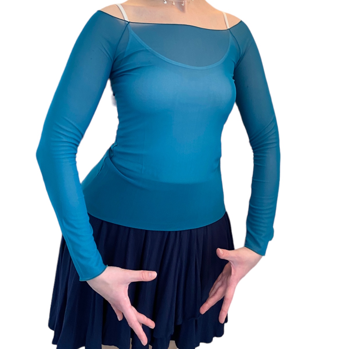 Langärmeliges Faith-Mesh-Oberteil für Damen. Dieses Netzoberteil hat einen breiten U-Boot-Ausschnitt und lange Raglanärmel. Erhältlich in verschiedenen Netzfarben.