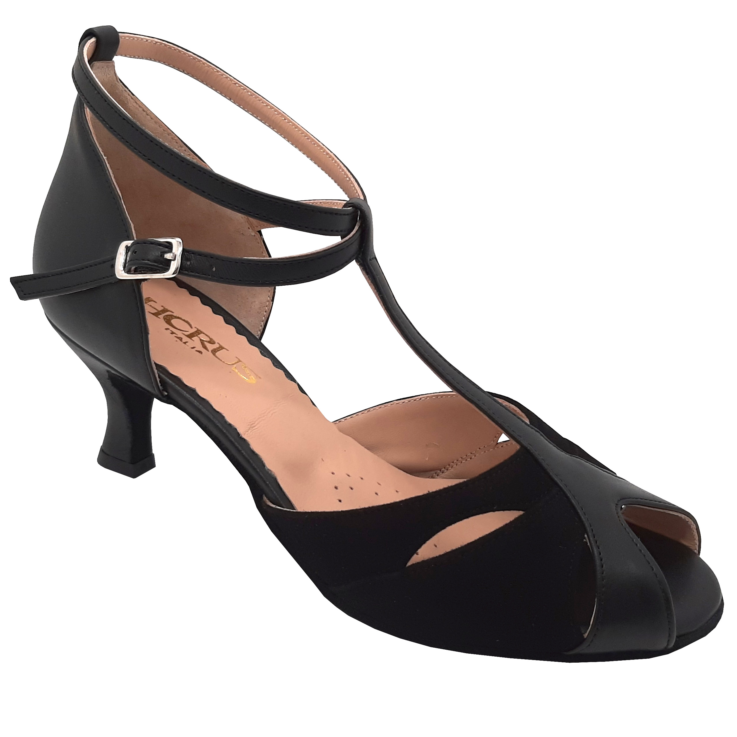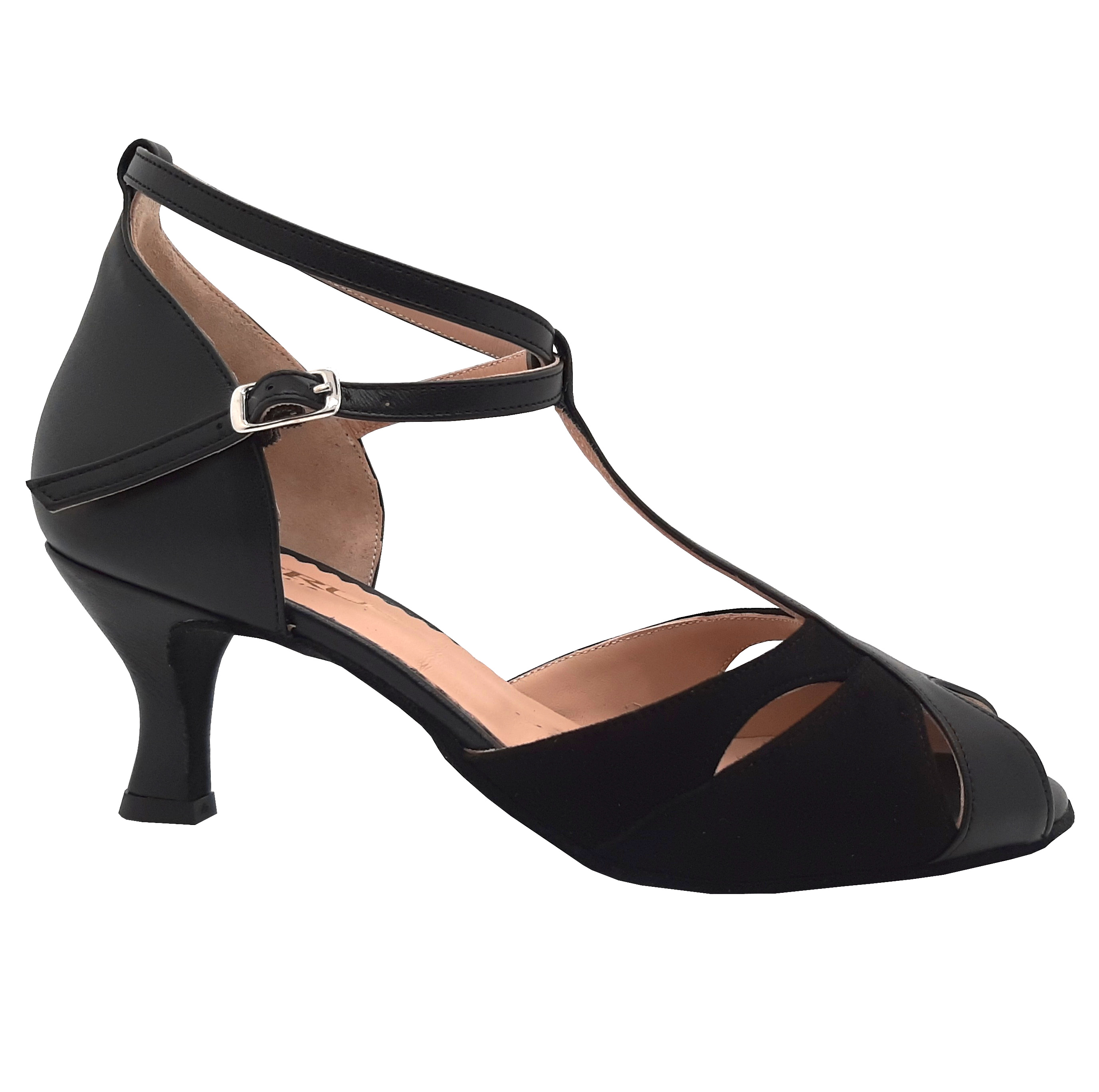 Ein italienischer Tanzschuhklassiker - der BOCA DE LEONE (Löwenmaul) - so beliebt durch seine extrem gute Passform - hier in einer schwarzen Kombination aus Nappaleder und weichem Velourleder mit einer Absatzhöhe von 6 cm, griffiger Velourledersohle und eingearbeiteter Pelotte. Alle Materialien und Leder in Europa gefertigt, gegerbt und gefärbt - nach europäischen DIN Normen natürlich absolut giftfrei.