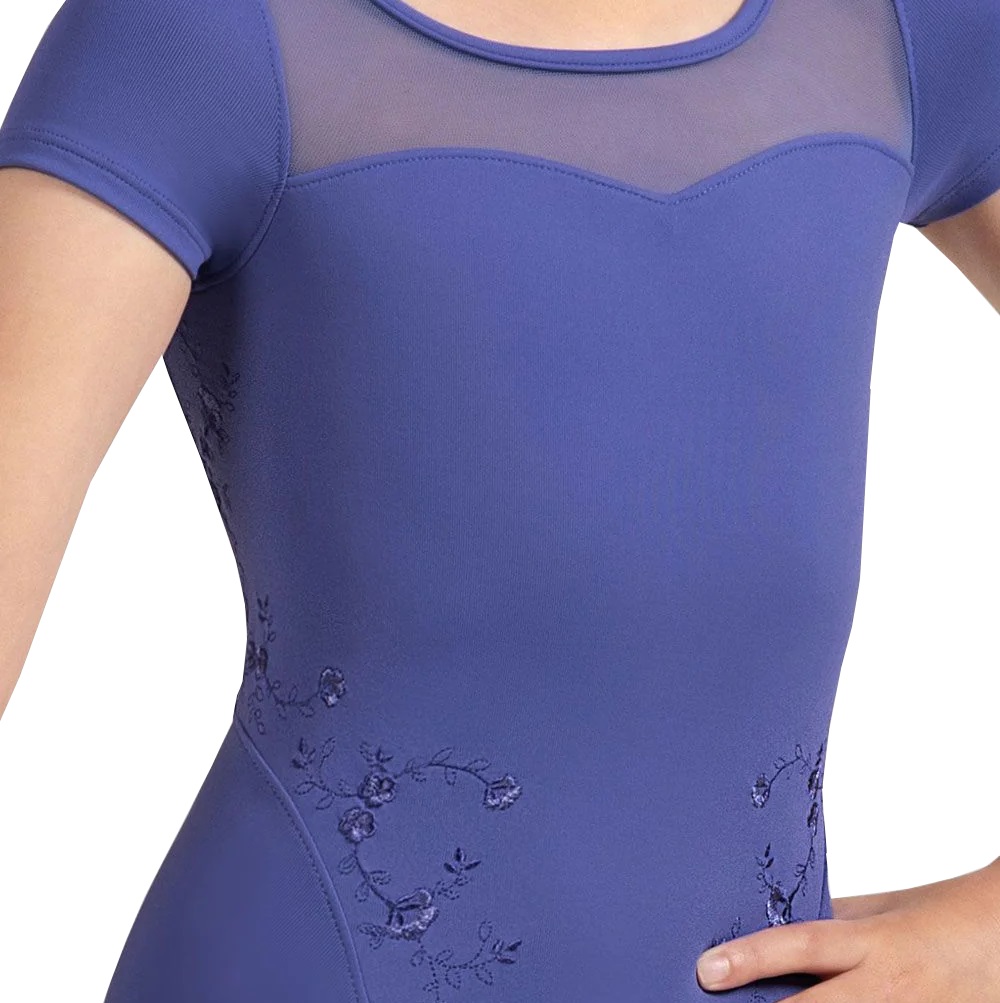 Das Leilani-Trikot mit Flügelärmeln für Mädchen verfügt über einen U-Ausschnitt aus weichem Netzstoff mit herzförmigem Detail, einen mit Blumen bestickten Körper und Flügelärmel. Teil der Petite Fleurs-Kollektionen für Mädchen; Lassen Sie Ihr Kleines bei jedem Schritt in dieser bezaubernden Kollektion aufblühen, die die Magie des Tanzes einfängt. Jedes Design mit zarten gestickten Blumenmotiven besteht aus Blochs charakteristischen Performance-Stoff.