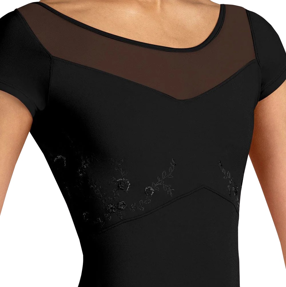 Das Damen-Trikot „Aster Floral“ mit Flügelärmeln verfügt über einen U-Ausschnitt aus Netzstoff mit zarten Blumenmotiven auf der Brust, einen tiefen, doppelten U-Ausschnitt aus Netzstoff am Rücken und Flügelärmel. Teil der Bloch Fleurs-Kollektion; Mit wunderschön gestickten Blumenmotiven, die jedes elegante Design zieren, gefertigt aus unserem charakteristischen Performance-Stoff, verleiht es Ihrer Tanzgarderobe einen Hauch natürlicher Schönheit. Erhältlich in einer raffinierten Palette aus Pfirsich, Graphit und klassischem Schwarz.