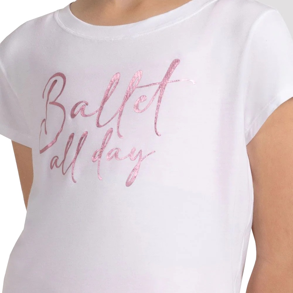 Das Mirella-Ballett-Print-Top für Mädchen verfügt über einen U-Ausschnitt und kurze Ärmel. In... mehr