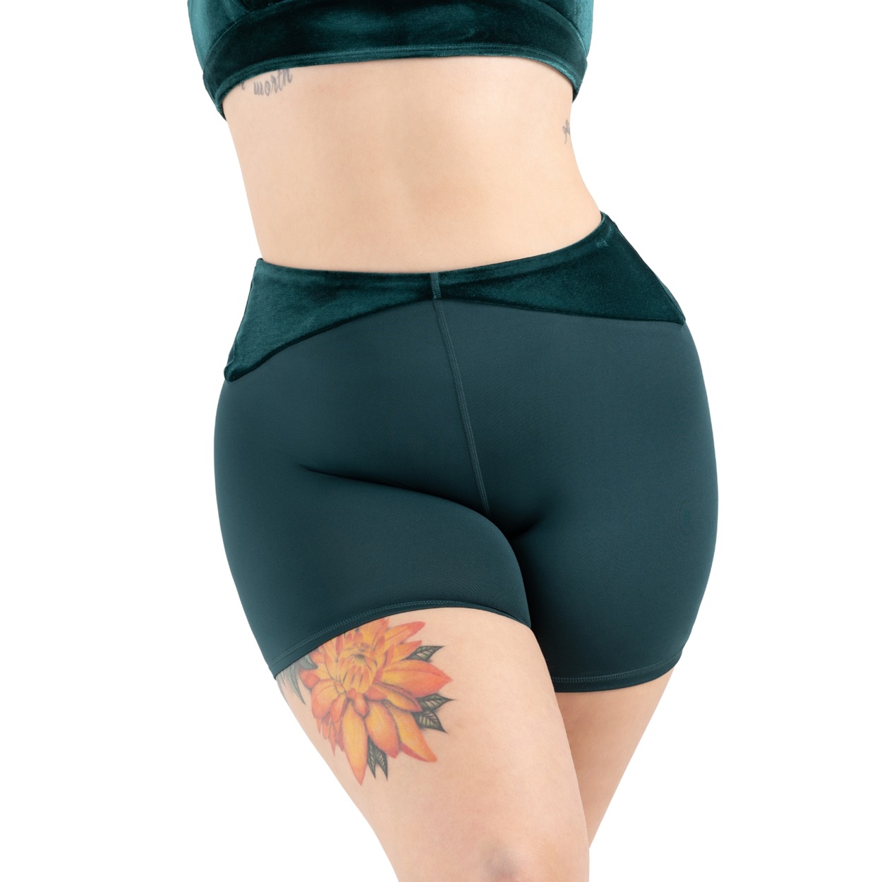 Verbessern Sie Ihre Tanz- und Workout-Kleidung mit der Grove Short! Diese Shorts bestehen aus einer kuscheligen Mischung aus Polyester und Elasthan und bieten Flexibilität und hohen Tragekomfort. Das hochgeschnittene Design und der Samtbund betonen die Körperlinien und verleihen Ihrem Tanzensemble einen Hauch von Raffinesse. Die Naht in der hinteren Mitte und das tiefe V-Detail am Rücken sorgen für einen ausgefallenen Stil, während der passend eingefärbte Samt dem Design einen polierten Look verleiht. Kombinieren Sie es mit dem Viridian Bra Top, um den Look zu vervollständigen. Nur in Erwachsenengrößen erhältlich.