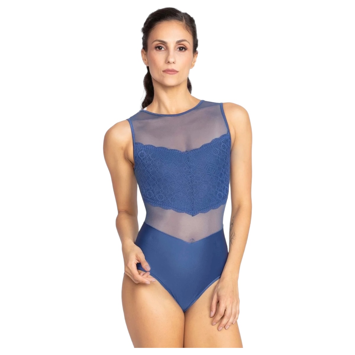 Ein zarter Ballettanzug aus einem Mix von weichem Tüll und elastischer Spitze in schwarz oder preussisch Blau - Mesh und Spitze sind butterweich auf der Haut und machen jede Bewegung mit.