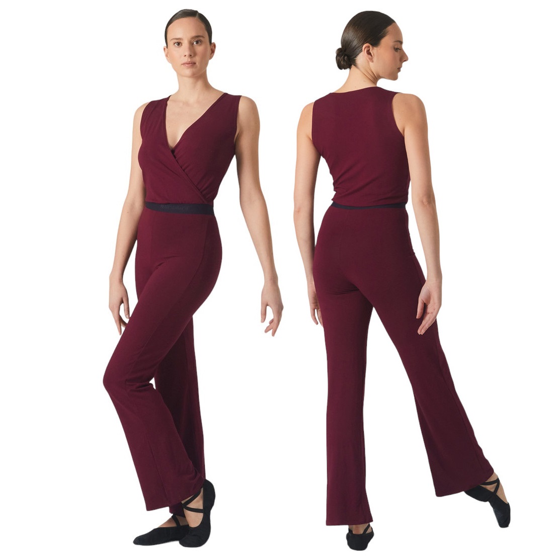 Tanz- und Yoga-Overall mit Wickelausschnitt. Mit seiner hohen Taille und den ausgestellten Beinen ist es sehr trendig und feminin und betont die Silhouette. Dank des weichen Bi-Stretch-Materials ist es sehr bequem.