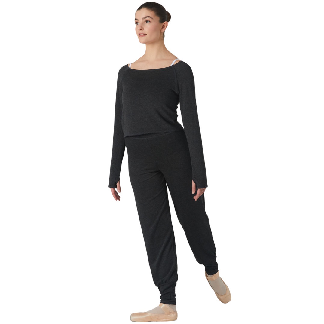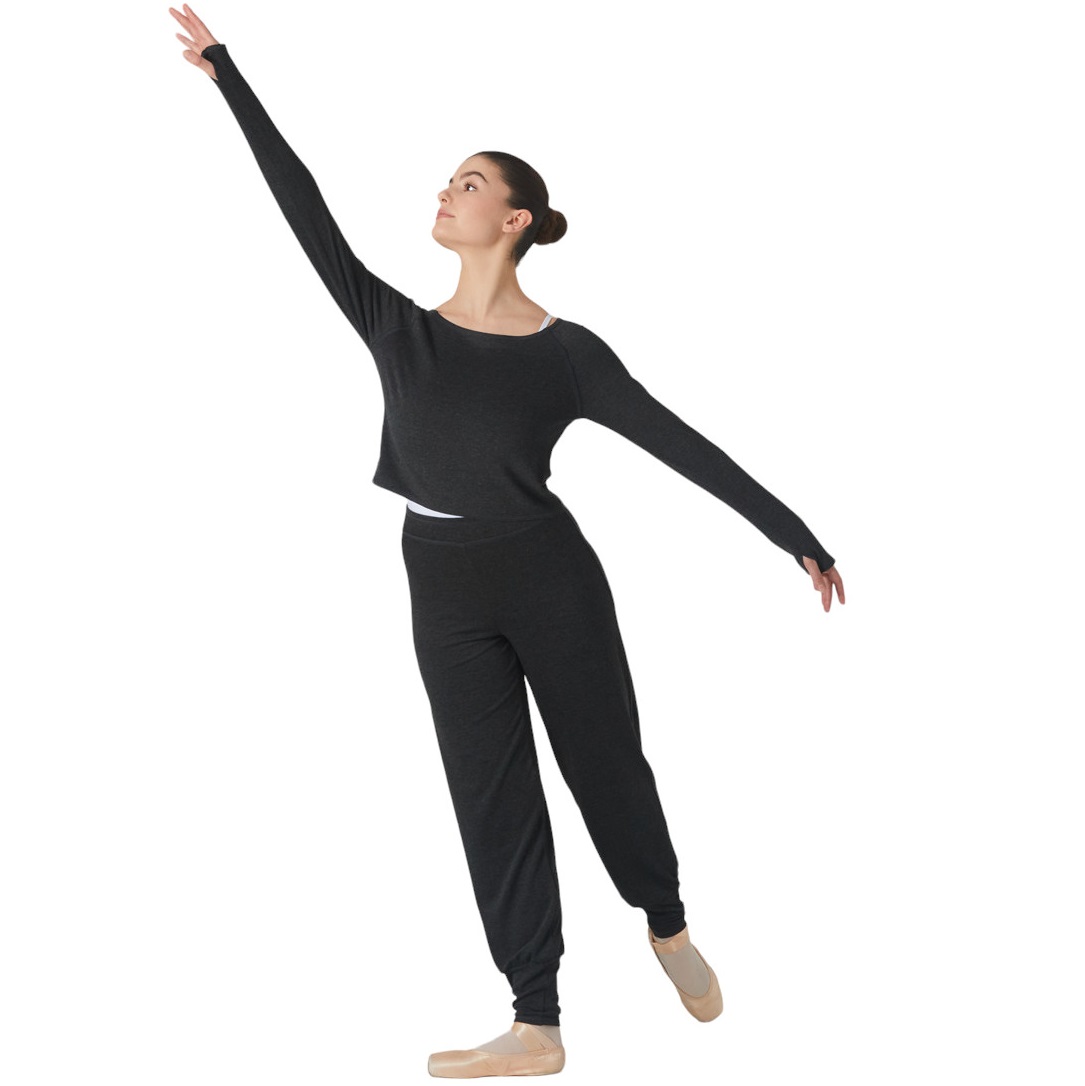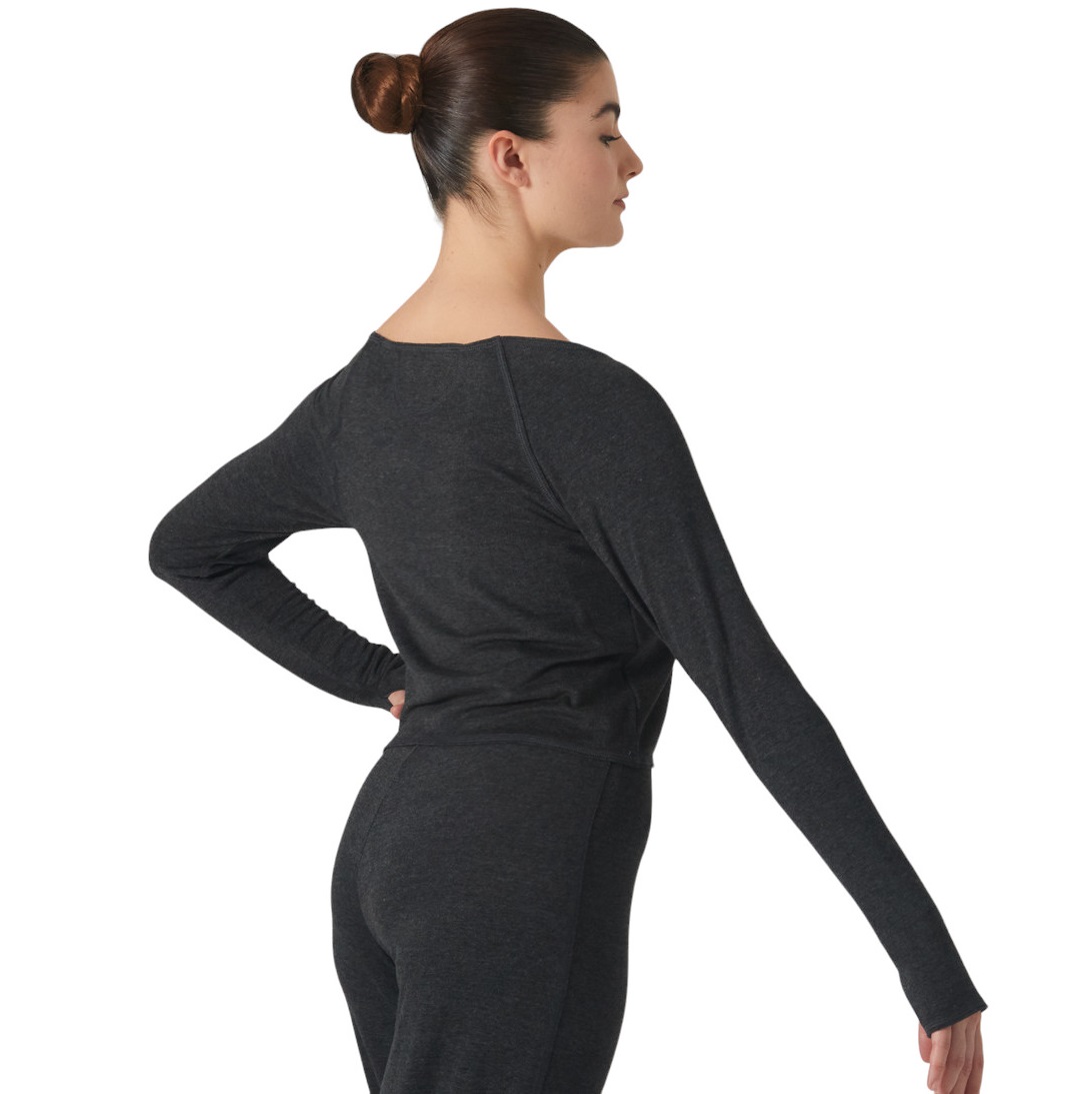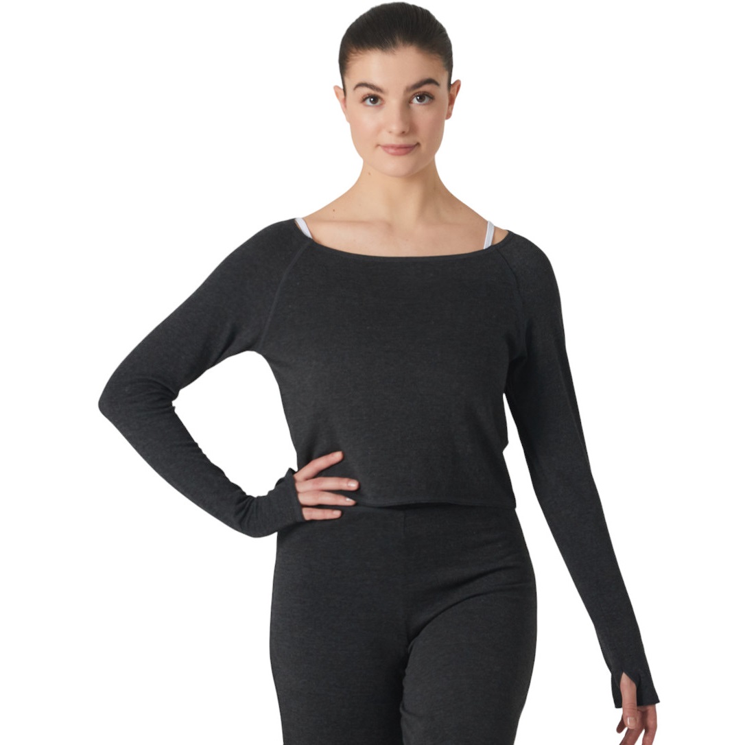 Dieses melierte Crop-Top aus Viskose ist das ideale Kleidungsstück für Ihre Aufwärmübungen. Dank seines offenen Ausschnitts betont es Ihre Kopfhaltung perfekt. Daumenöffnungen sorgen für perfekten Halt bei jeder Bewegung. Dieses Oberteil kann über einem Trikot oder mit Hosen getragen werden.