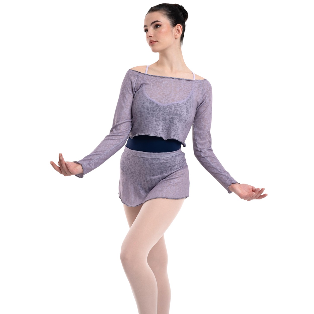 Das Warm-Up Crop Top 6633 Eutenea aus dem Hause Intermezzo mit U-Boot Ausschnitt und langem Arm.