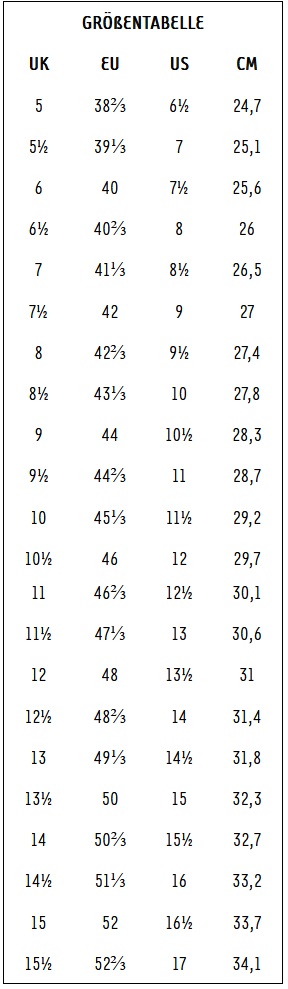 Bei diesem Artikel handelt es sich um die Leisten-Form „Canyon“. Alle Artikel in dieser Form haben je nach Material und Schnitt eine vergleichbare Passform - Zwischensohle
