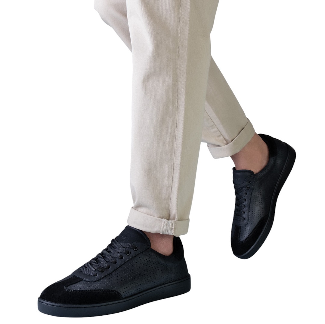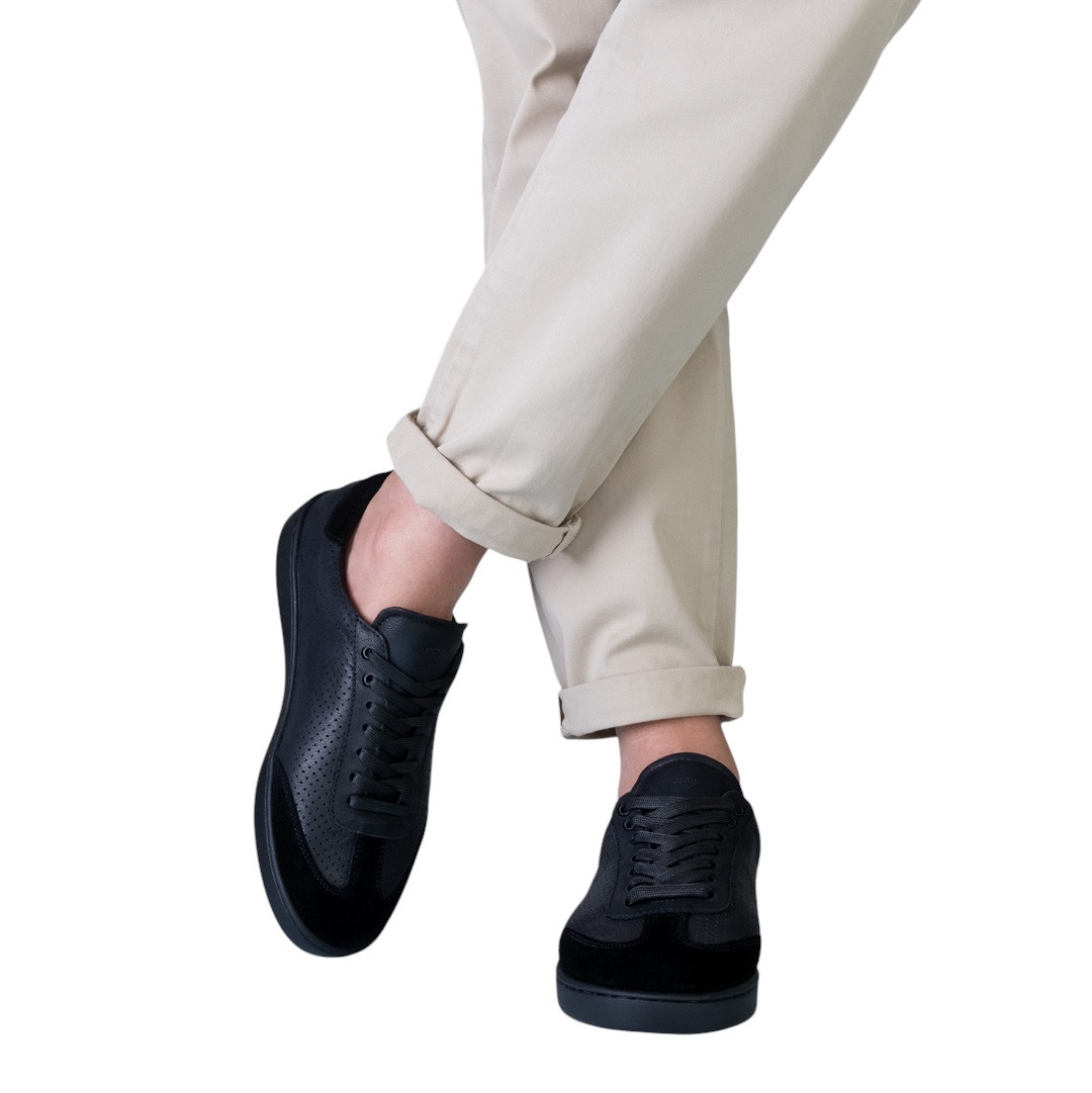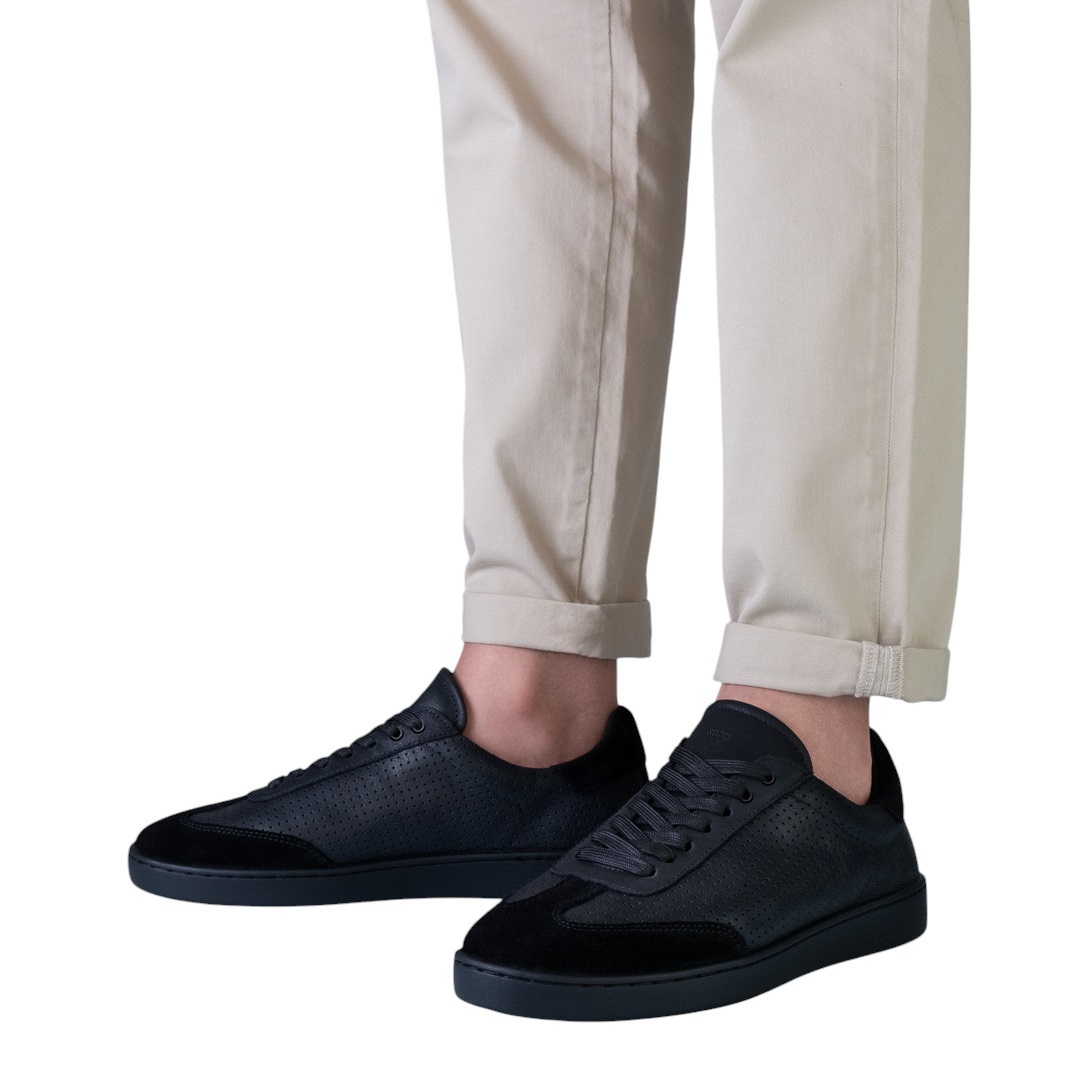 Handschuhweiches und hochwertiges perforiertes Nappa- und Velourleder in schwarz, welches atmungsaktiv ist und sich perfekt dem Fuß anschmiegt - Futter
