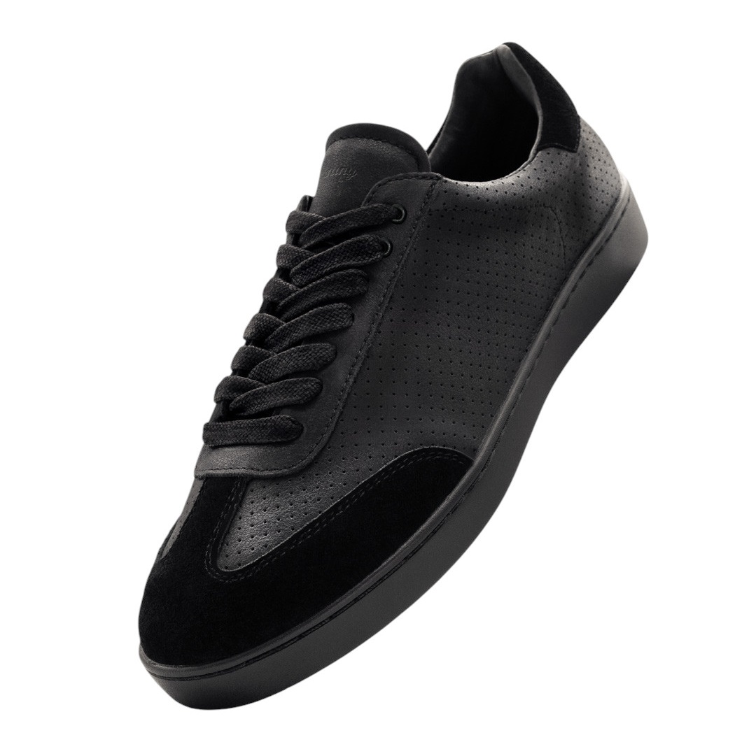 Ein Must-Have unter den Tanzsneakern mit durchgehender Sohle. Dieser urbane federleichte Tanzsneaker von Suny ermöglicht müheloses und präzises Drehen – auf allen Böden. Gefertigt aus schwarzem hochwertigem perforiertem Nappaleder in Kombination mit feinem Velourleder passt sich dieser einzigartige Tanzsneaker perfekt dem Fuß an. Die neu entwickelte lederbezogene und herausnehmbare Innensohle bietet perfekten Halt und Dämpfung bei jedem Schritt. Mit seinem eleganten, komplett schwarzen Design ist der Suny 7430 nicht nur ein echter Blickfang, sondern auch der perfekte Begleiter für jeden Tanzabend – drinnen wie draußen.