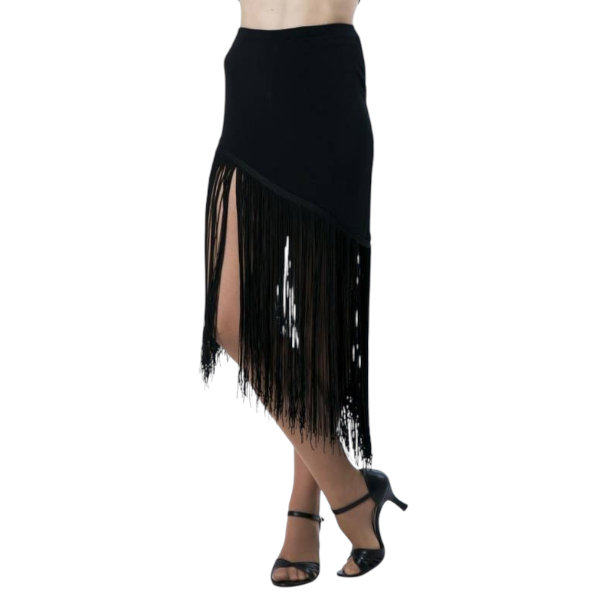 CALVI ist ein asymetrischer Lateinrock mit 40 cm langen Fransen der perfekt ist für Dein Lateintraining oder eine durchtanzte Salsanacht.