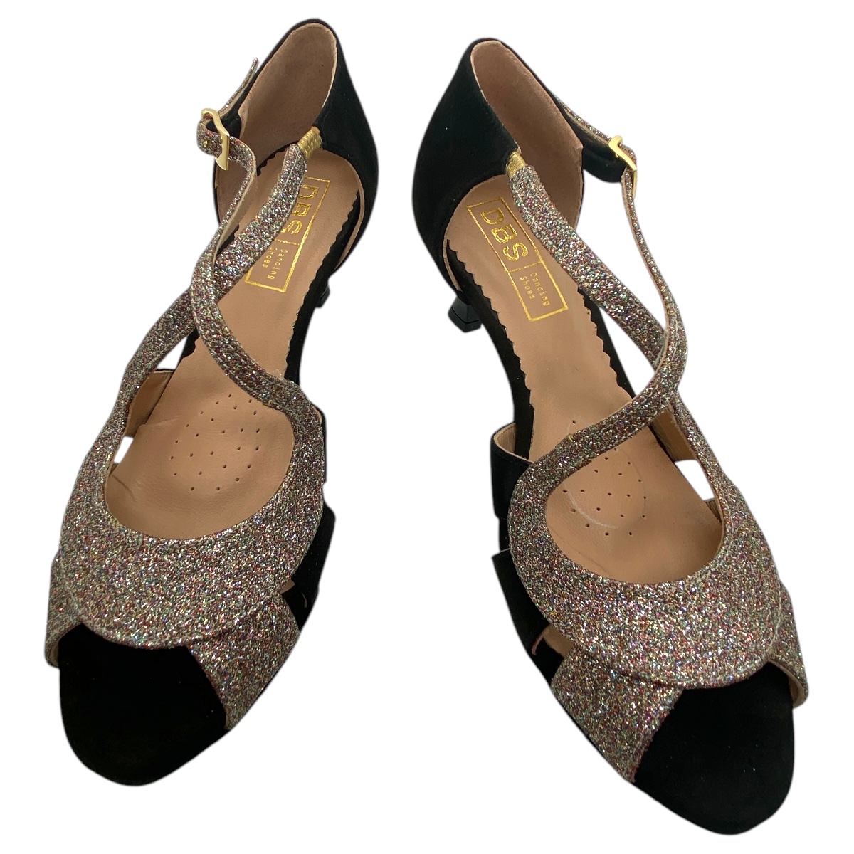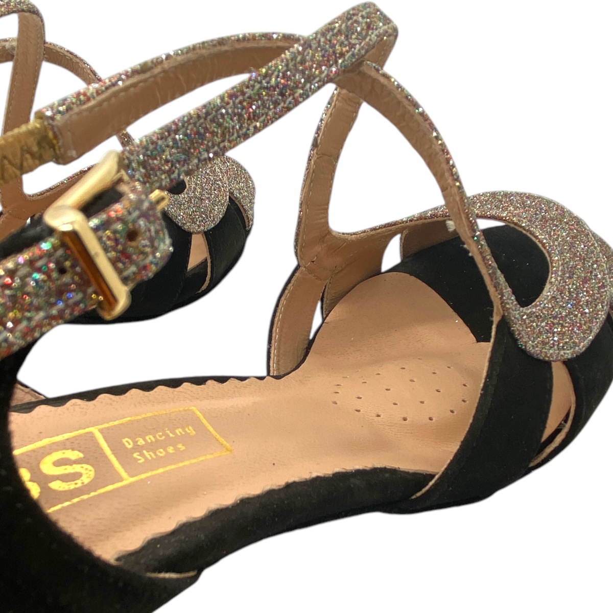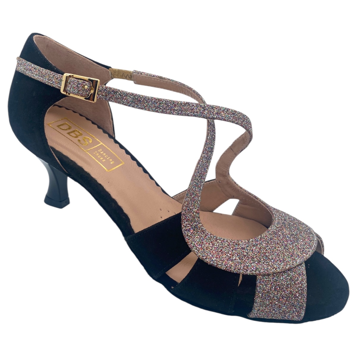 Damen Tanzschuh Modell LEA 903 - Etwas breiter geschnittener Damen Tanzschuh aus schwarzem Velourleder in Kombination mit Glanzmaterial, Absatz 60 mm - weich gepolstert mit integrierter Pelotte. Ein tolles Modell, dass zu allen Farben Deiner Kleiidung passt.
