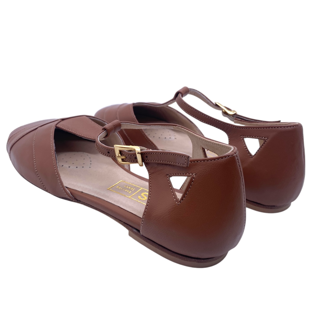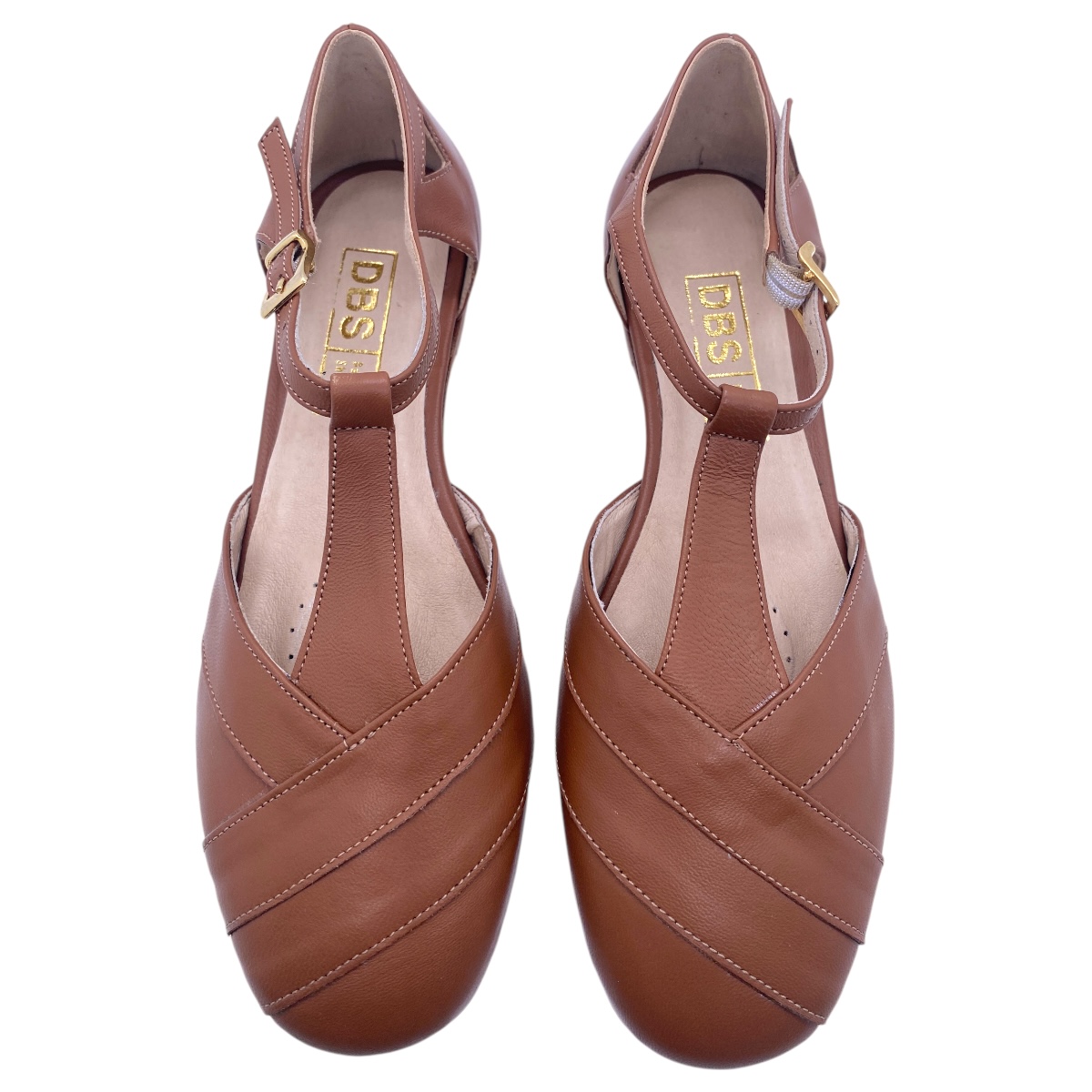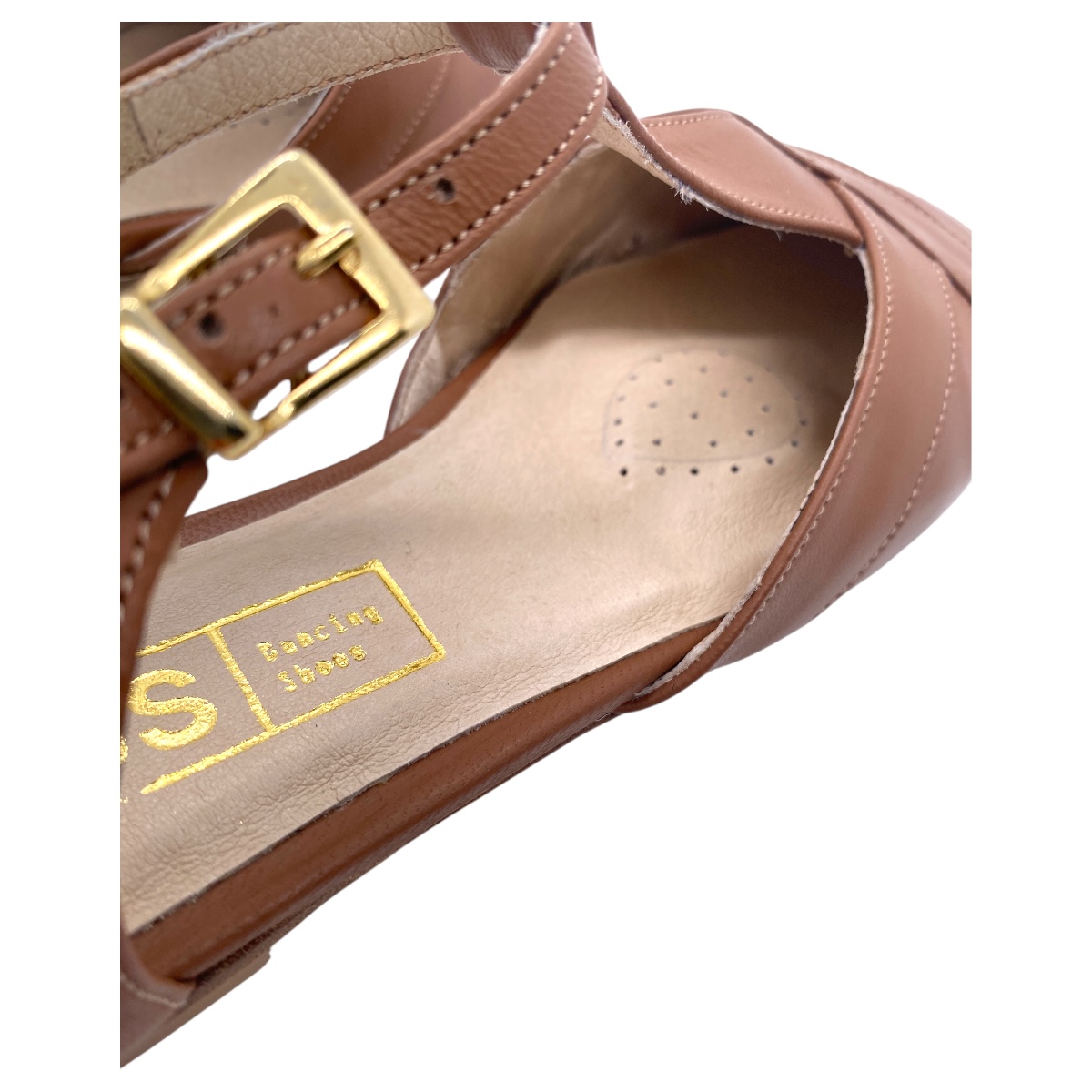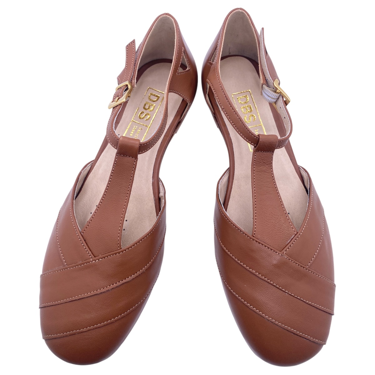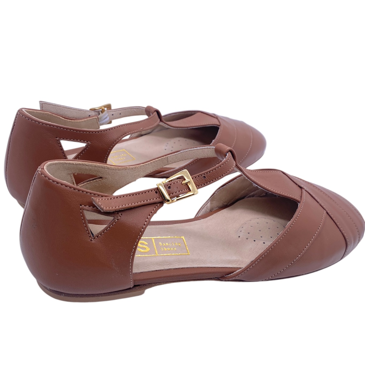 Modell Ella in brandyfarbenem Nappaleder - der perfekte Schuh für deinen Swing, Lindy Hop oder Charleston ! Unsere flachen Swing Dance Schuhe aus italienischer Handarbeit bieten dir – Komfort, Eleganz und Präzision in einem.