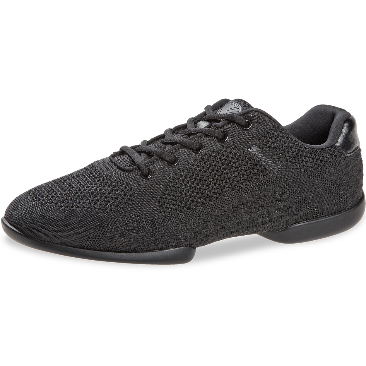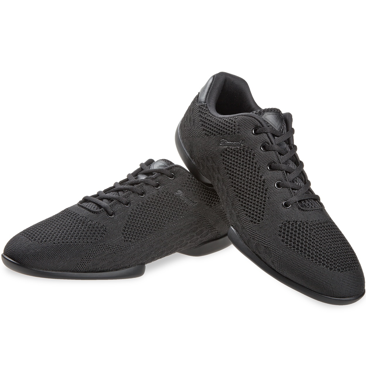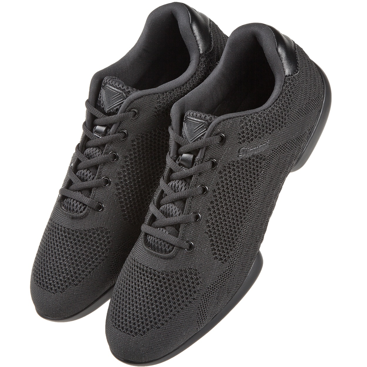 Mod. 213 TUNE Diamant Mesh-Sneaker unisex mit 5-Loch Schnürung. Dieser Dance Sneaker in der Weite G (normal) wird mit einer geteilten PU Sneaker Sohle mit SpinPoints gefertigt. Als Innenfutter wird atmungsaktives und Feuchtigkeit absorbierendes Microfaser verwendet. Das Obermaterial aus gestricktem schwarz Mesh ist ein hochwertiges Funktionsgewebe.
