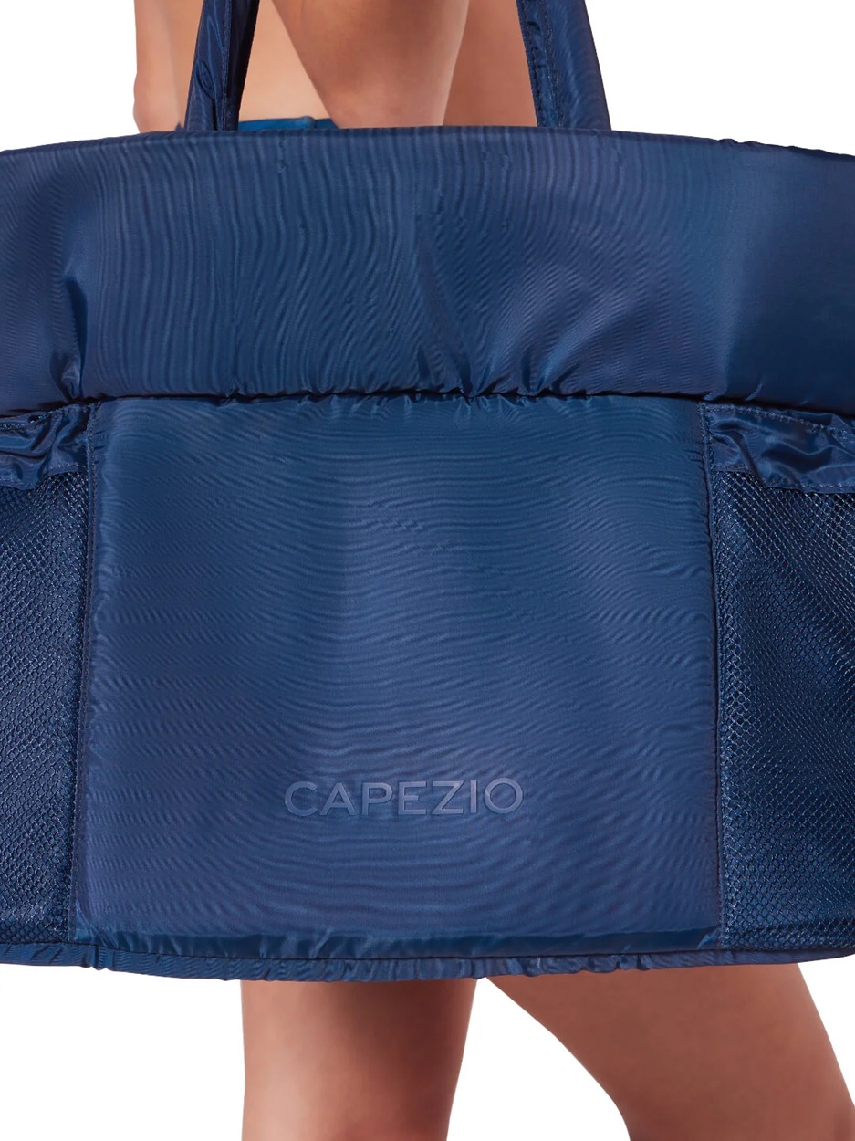 Die neue Studio Multi-Sleeve Tragetasche ist aus leichtem Polyester gefertigt, das das Tragen erleichtert und die Haltbarkeit erhöht. Sie verfügt über eine obere Klappe, die mit einem sicheren Schnappverschluss hoch- oder heruntergeklappt werden kann. Die Tasche verfügt über zwei verstellbare Außentaschen mit Kordelzug, die sich perfekt für Wasserflaschen oder andere wichtige Dinge eignen. Dank der rutschfesten Schultergurte lässt sie sich bequem zum und vom Studio tragen. Im Inneren gibt es ein spezielles Fach für schmutzige Kleidung sowie eine Reißverschlusstasche und zwei offene Taschen für noch mehr Ordnung. Auf der Vorderseite der Tasche ist ein farbiges Capezio-Logo zu sehen. Diese Tasche ist eine gute Wahl für den Tanzunterricht, den Besuch des Fitnessstudios oder die täglichen Besorgungen.