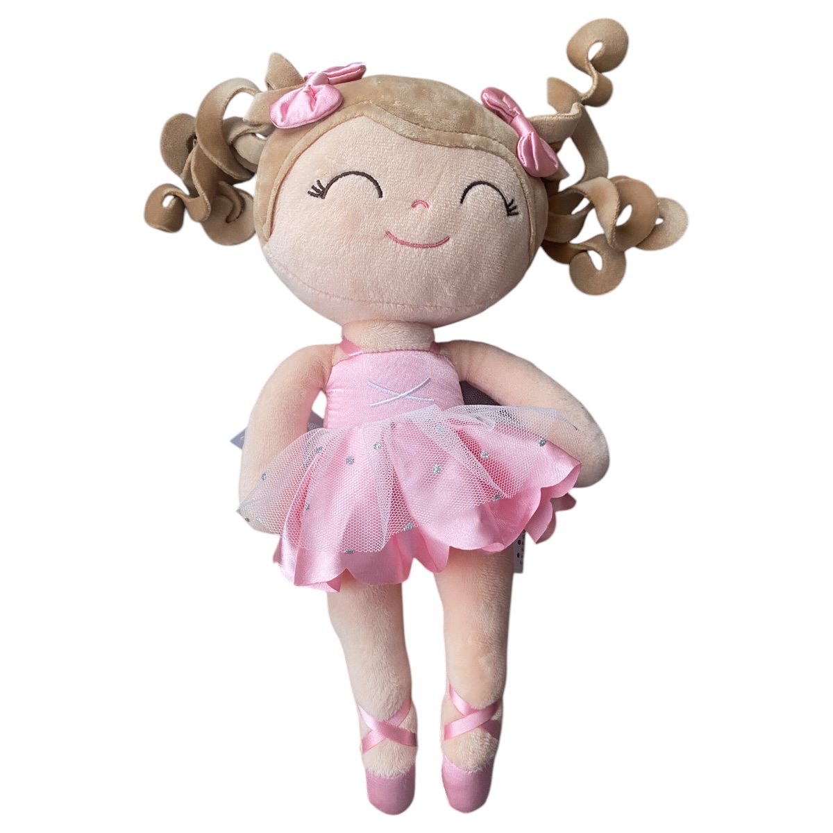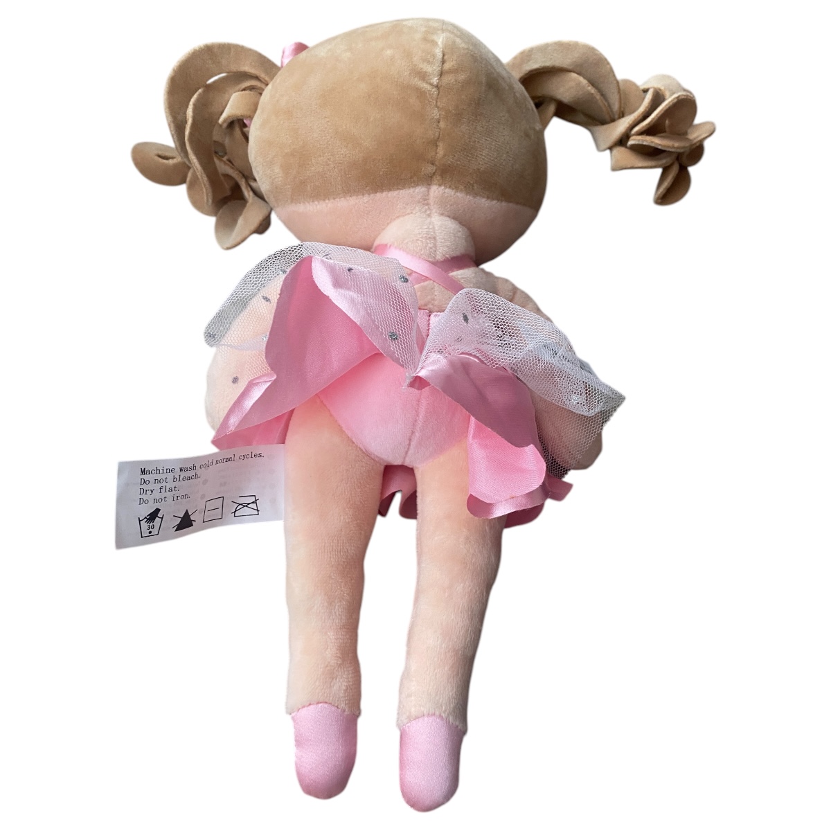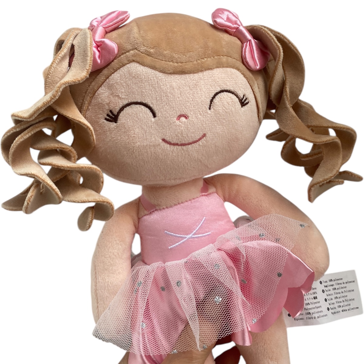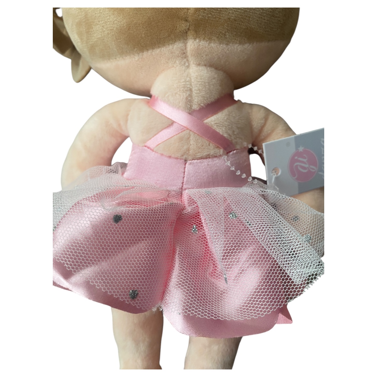 Niedliche, weiche Ballerina Puppe - das perfekte Oster- / Geburtstagsgeschenk für die angehende kleine Tänzerin. Gekleidet in ein zartes Satin-/Tüll-Tutu strahlt sie einen magischen Charme aus, der die Herzen aller Altersgruppen in seinen Bann ziehen wird. So weich, dass man sogar drauf schlafen kann wenn man sie nicht mehr loslassen mag...