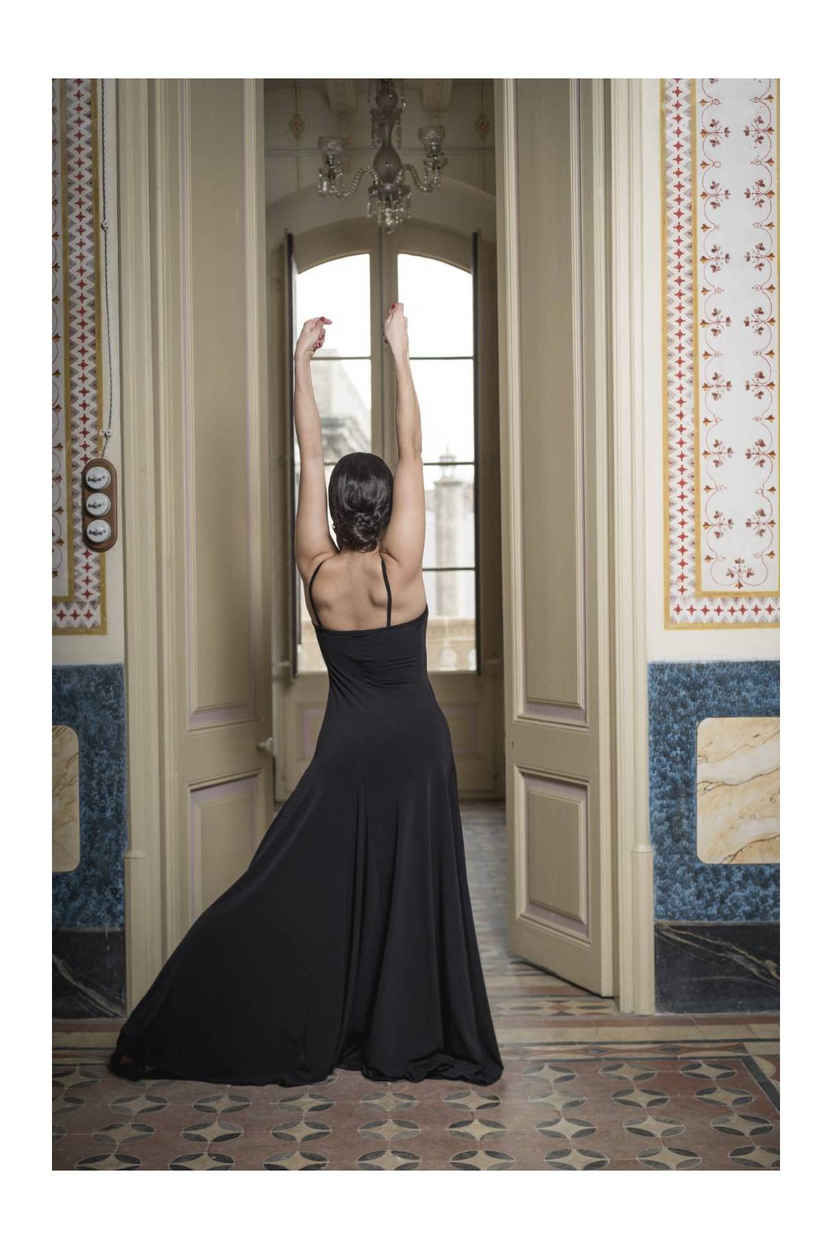 Langes Kleid mit Trägern und 2 Godets an jeder Seite und auf dem Rücken. Perfekt für Flamenco... mehr
