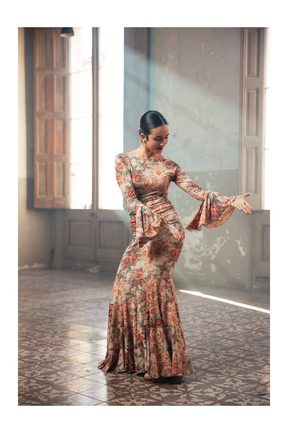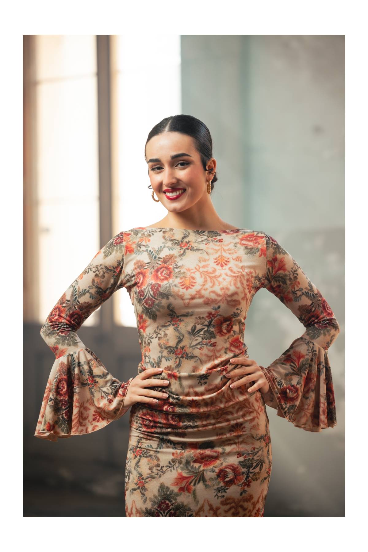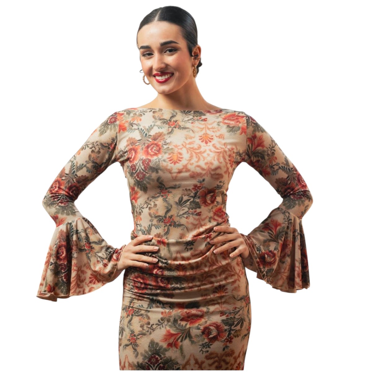 Hüftlanges Oberteil. Lange Ärmel mit Rüschen unten. U-Boot-Ausschnitt vorne geschlossen und hinten tiefer. Nicht nur zu Flamenco geeignet - dieses Top kann auch prima zum Ballroom oder im Tango benutzt werden, wenn du es ein wenig farbiger magst ...