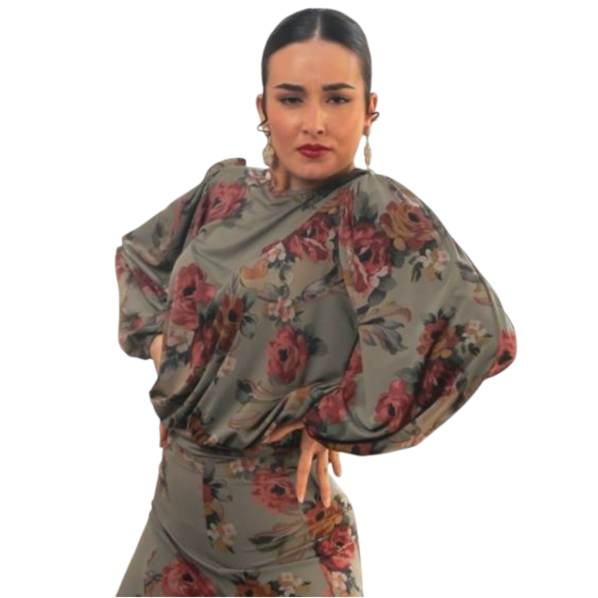 Elegantes Lanarm Top mit Puffärmeln und rundem Ausschnitt.