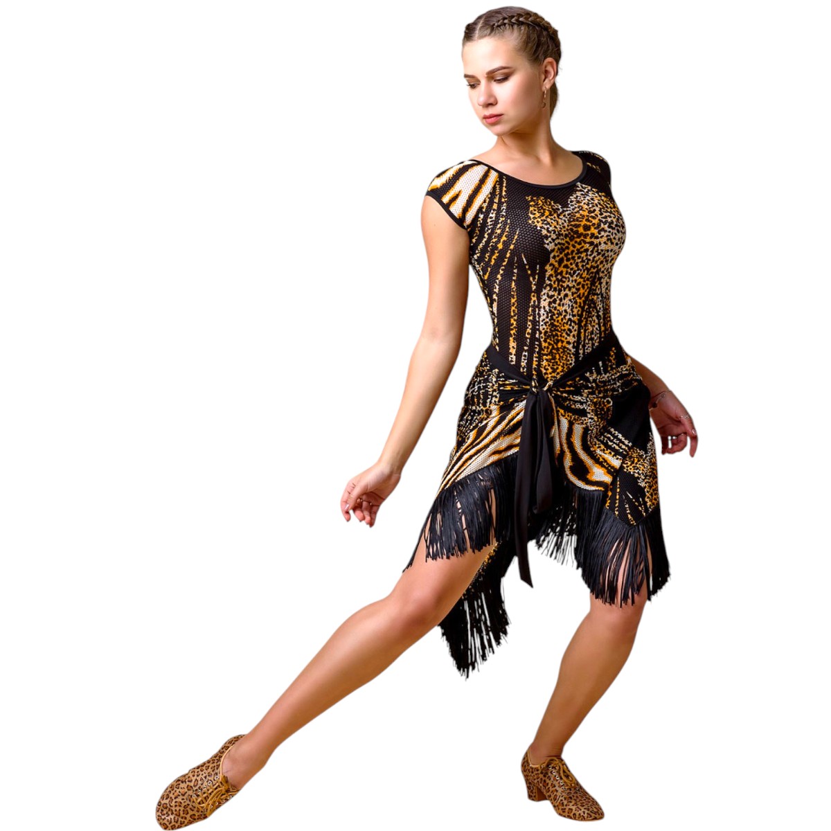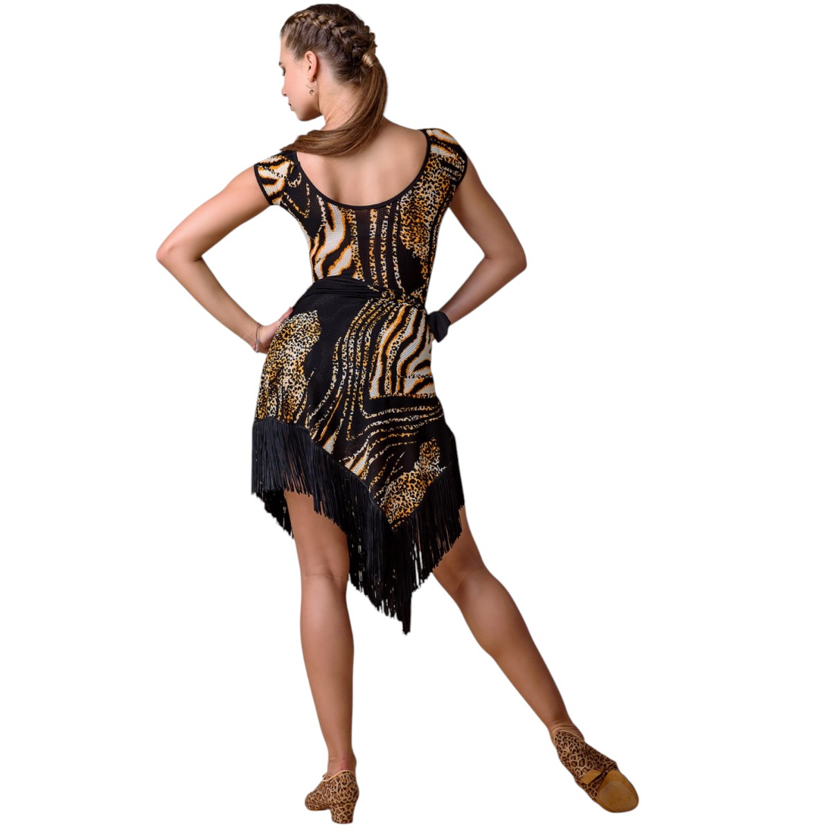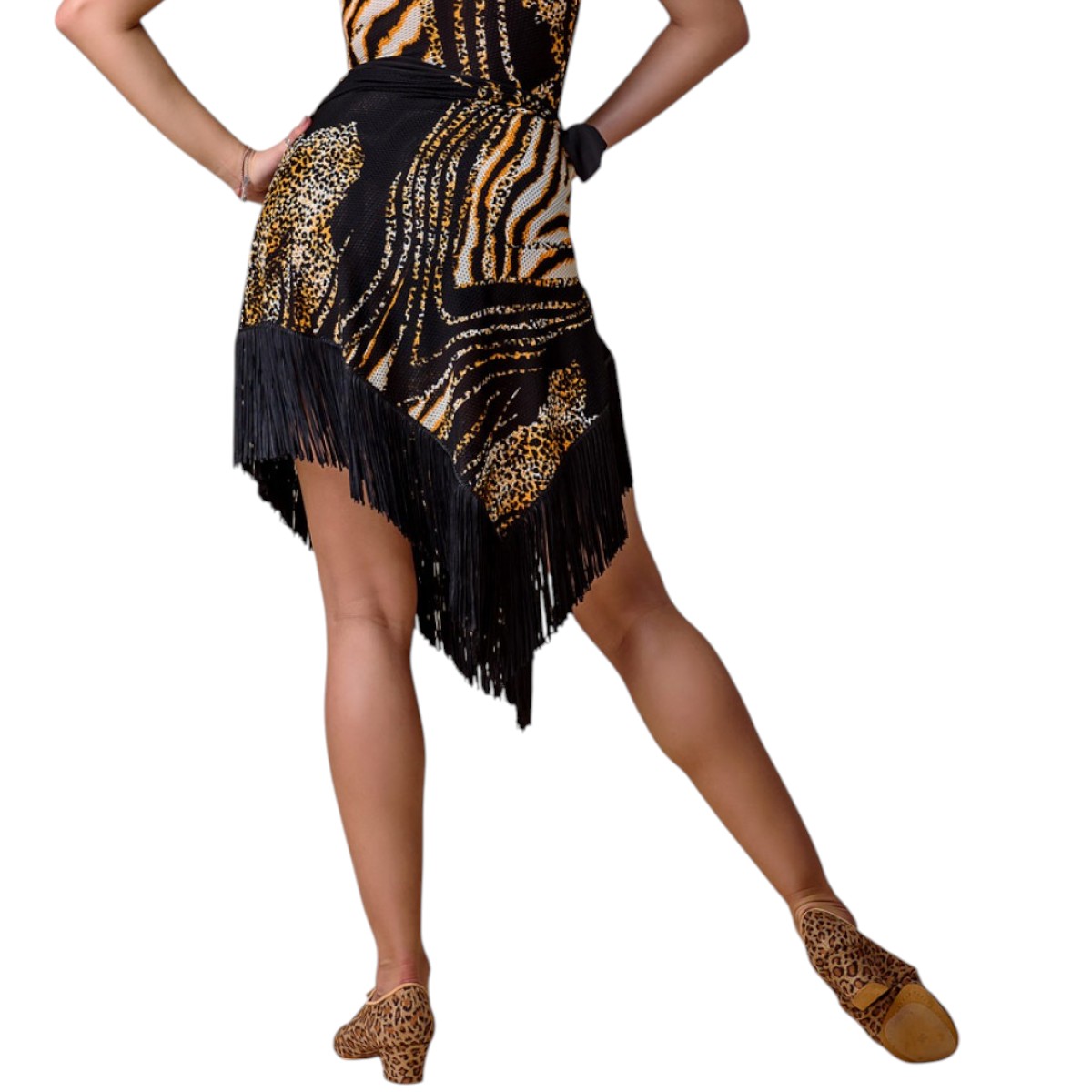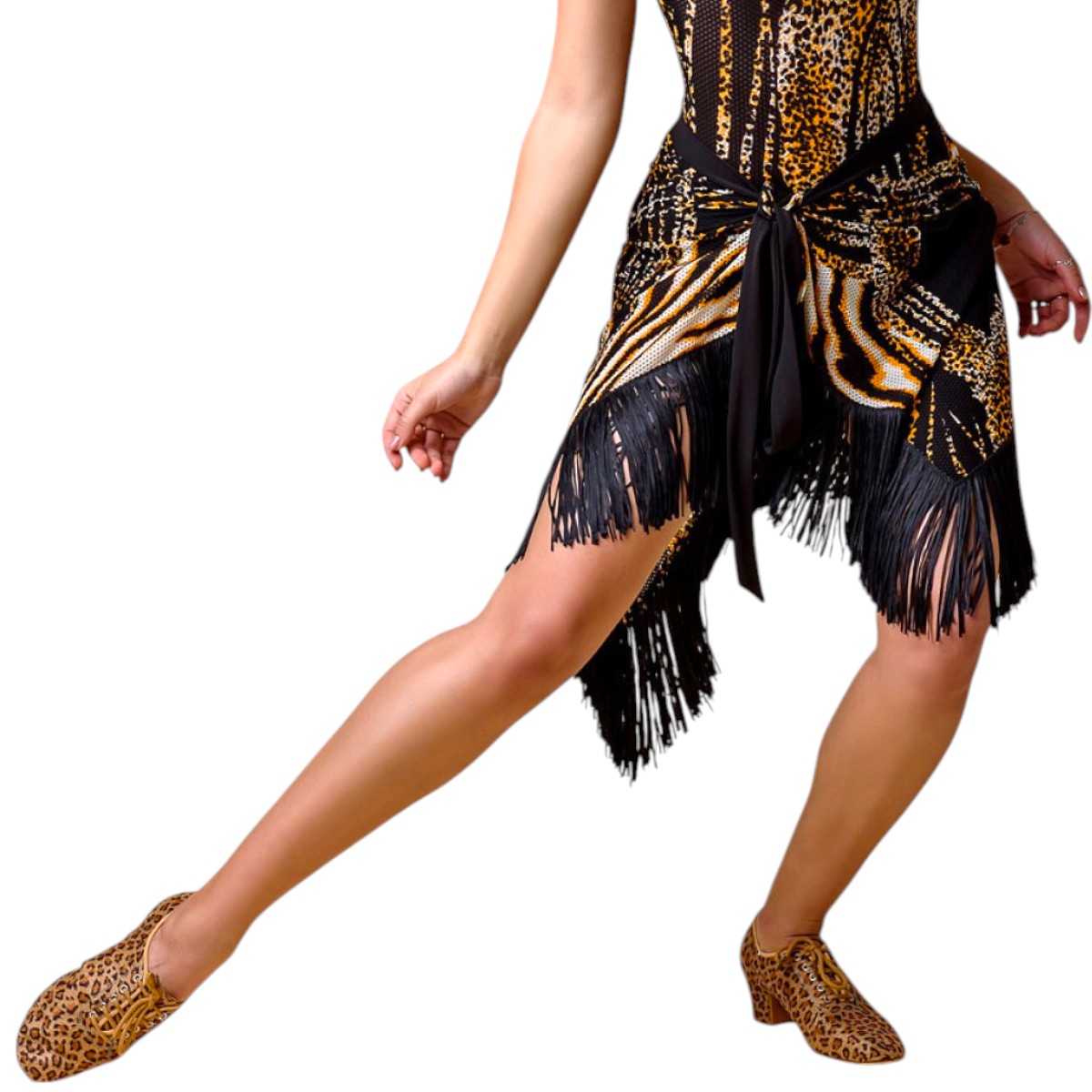 Der EMRATA MESH Lateinrock aus der Bang Bang Kollektion ist für alle gedacht, die Stil und Bewegung beim Tanzen schätzen. Hergestellt aus Netzstoff mit einem Aufdruck, der einen halbtransparenten Effekt erzeugt, wirkt er leicht und auffällig zugleich. Der Wickelschnitt mit integriertem Bund sorgt für eine verstellbare Passform, während der asymmetrische Saum mit scharfen Ecken an einen Schal erinnert und dem Look Eleganz verleiht. Der lange Fransenbesatz unterstreicht jede Bewegung und verleiht den Tanzbewegungen noch mehr Ausdruckskraft.